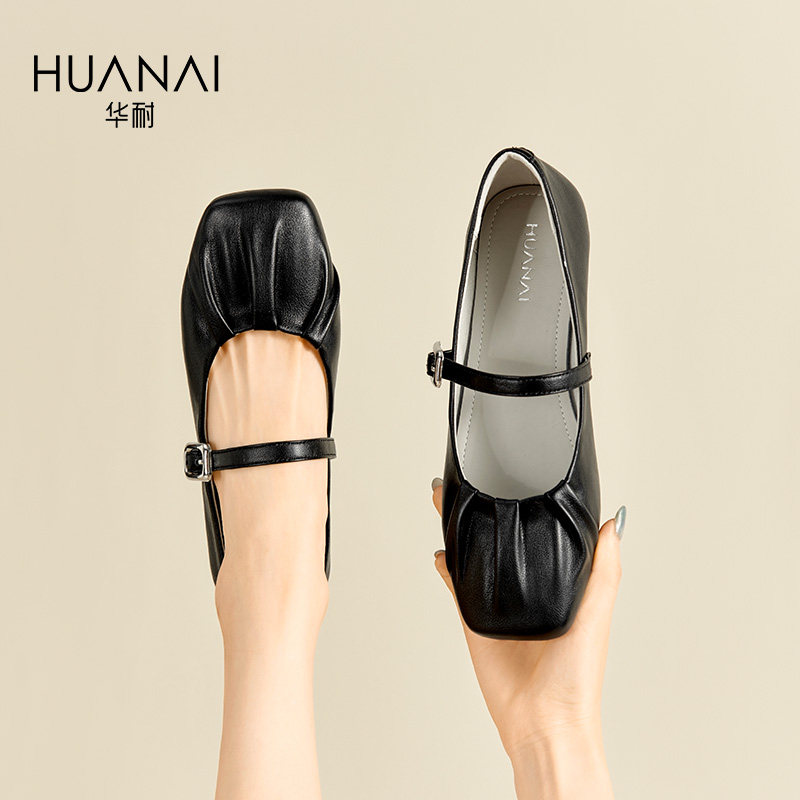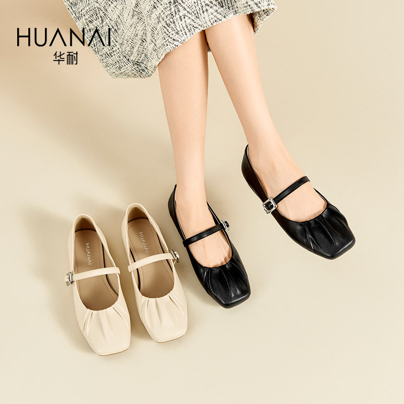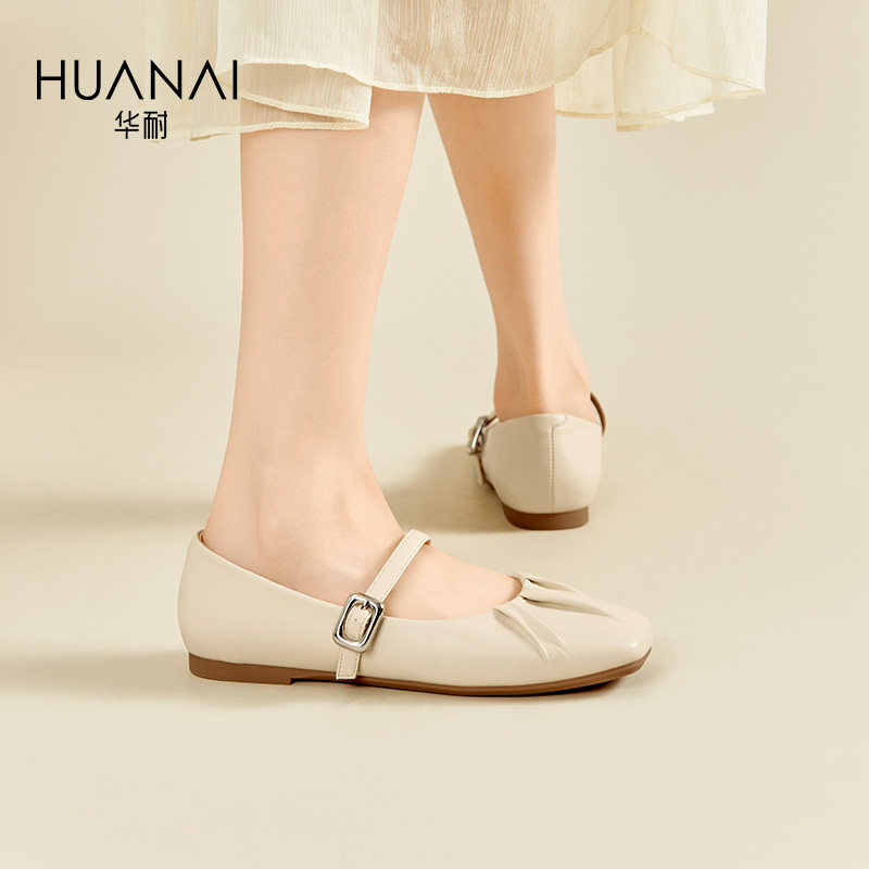 华耐超软底豆豆鞋女2025新款夏天船鞋平底孕妇鞋浅口玛丽珍妈妈鞋