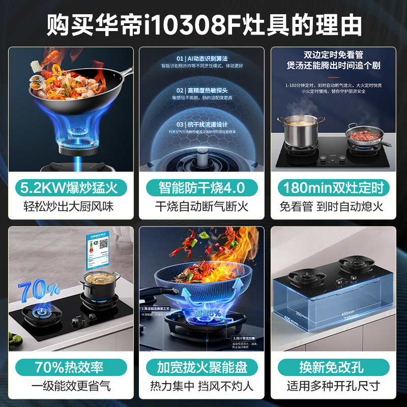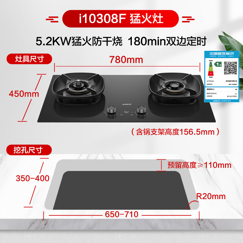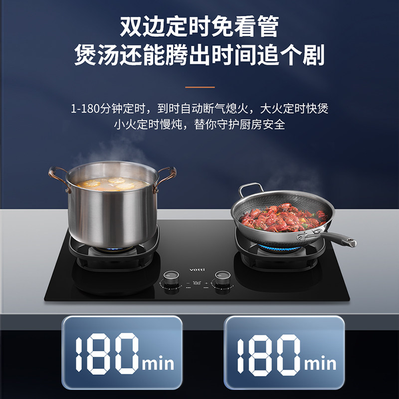 华帝i10308F家用燃气灶防干烧嵌入式厨房定时煤气灶双灶天然气灶