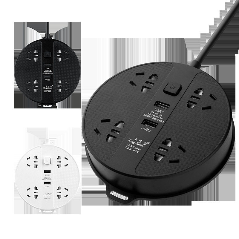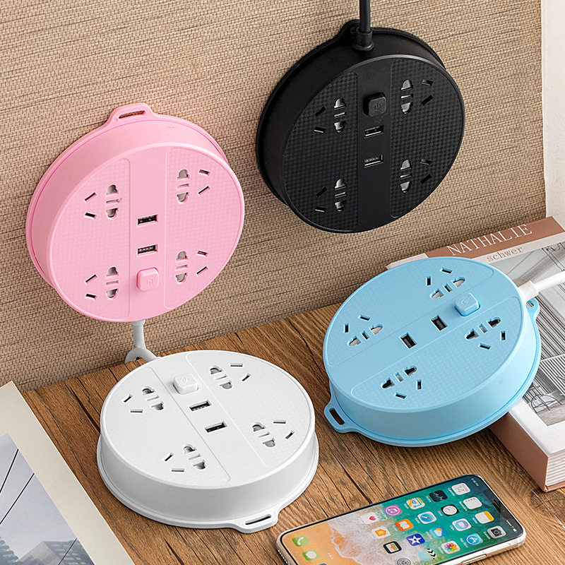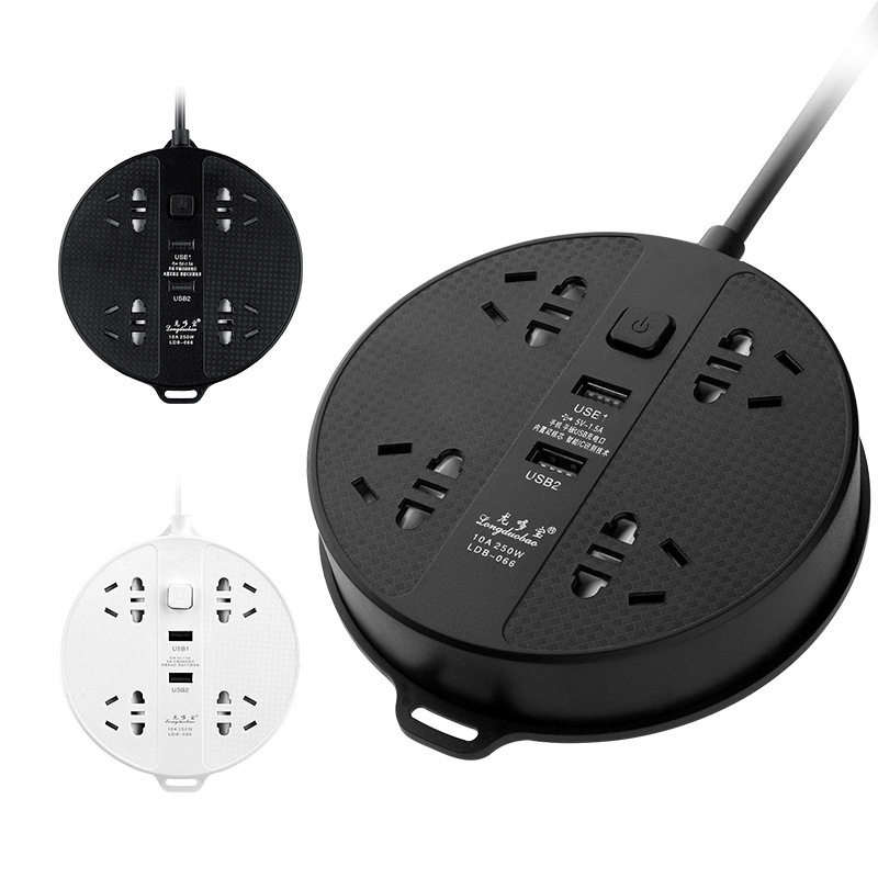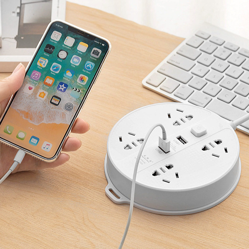 新款多功能圆形多孔位排插 家用办公智能usb插座面板接线板拖线板