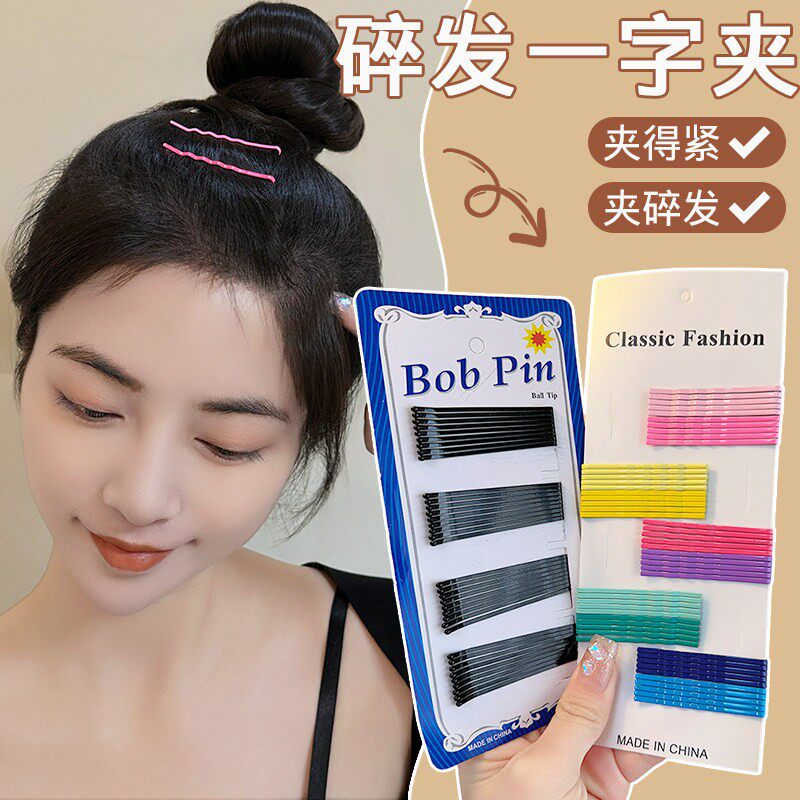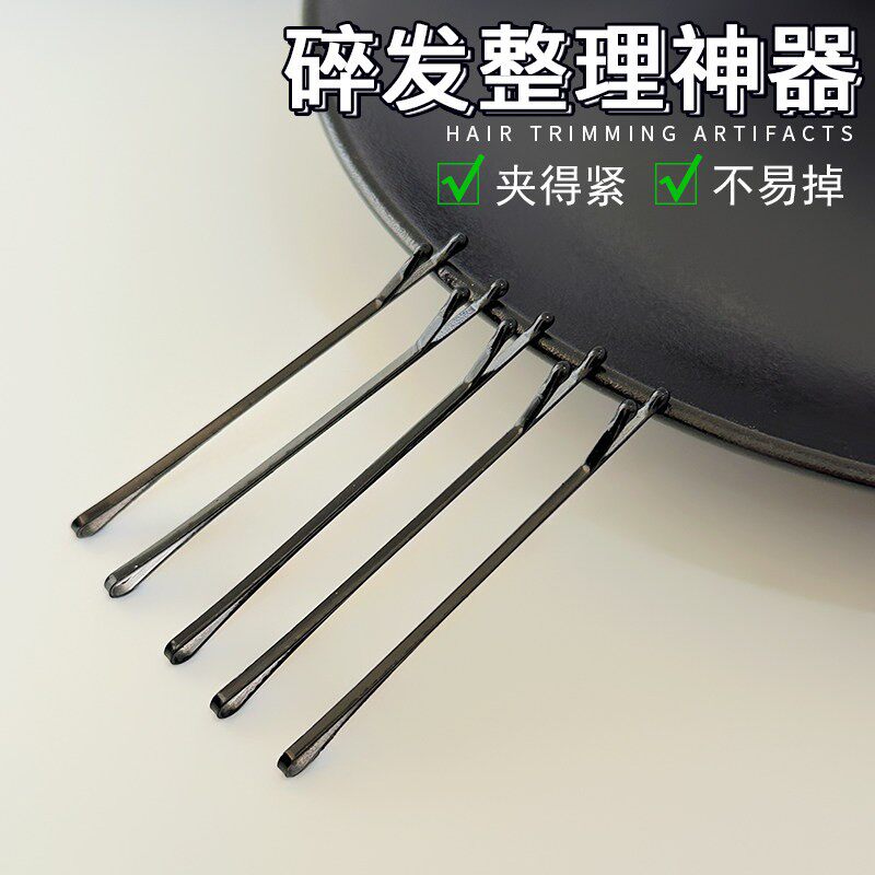 少女小金属刘海碎发一字鸭嘴造型侧边美妆发夹女发卡黑色夹子发饰