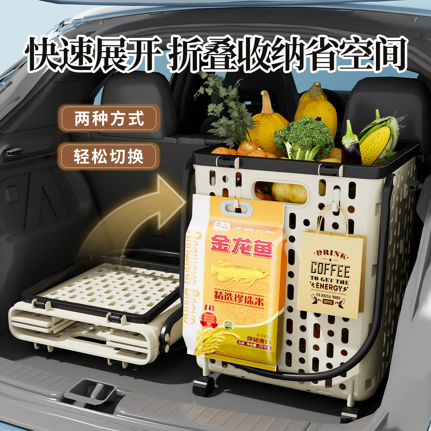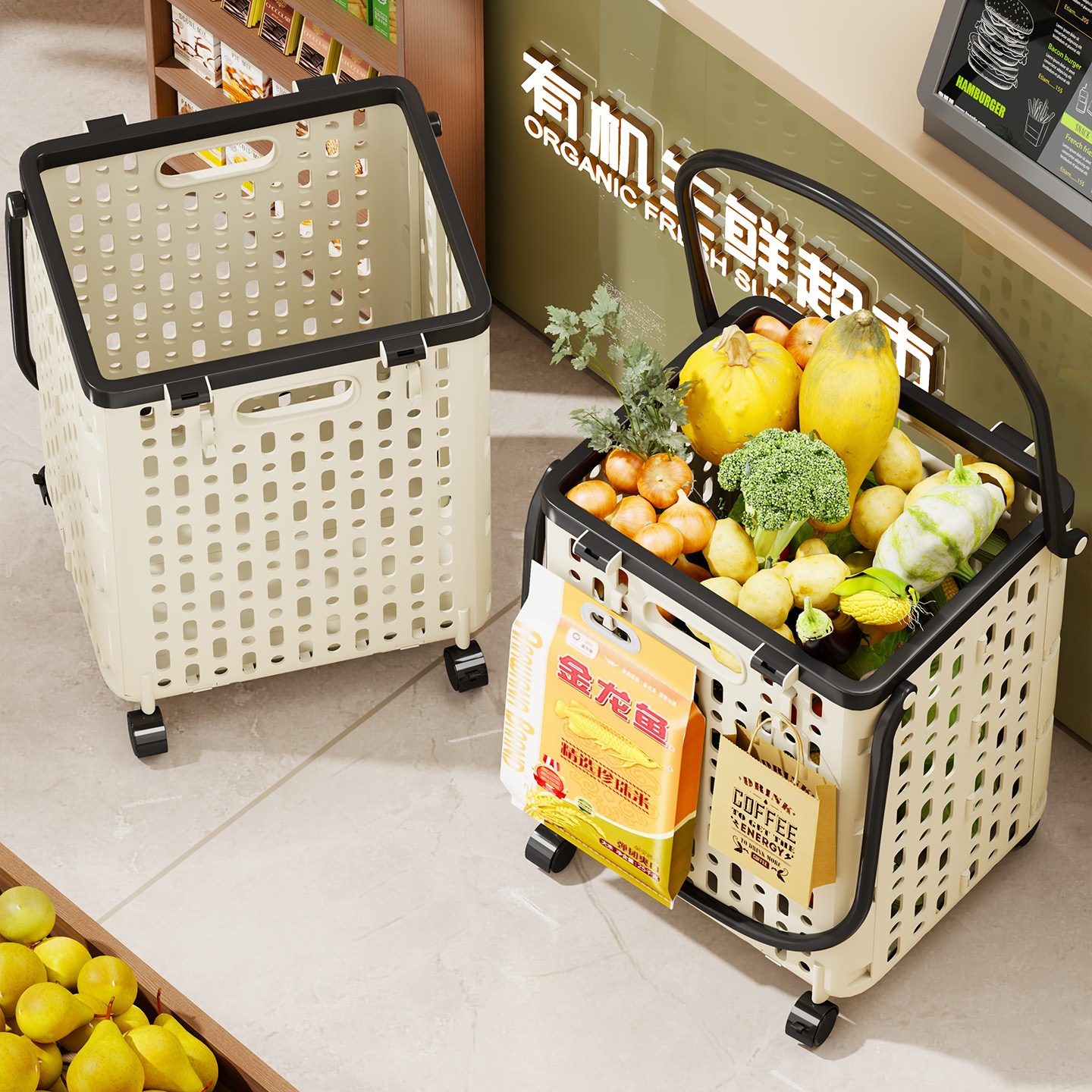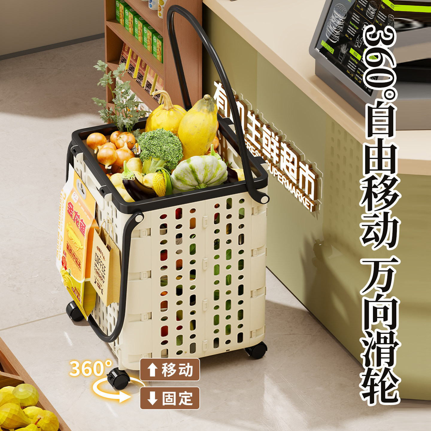 购物袋带轮子可折叠买菜小拉车拖轮便携式大容量推车超市手提袋