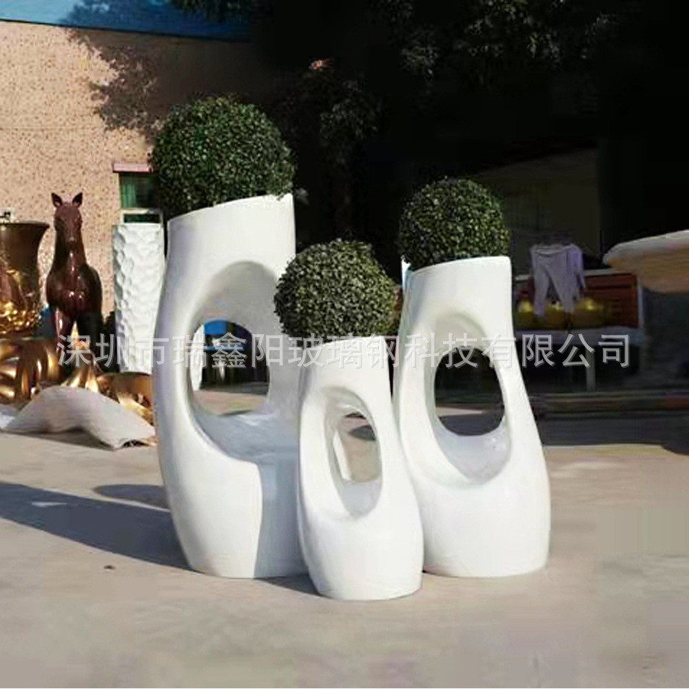 创意树洞玻璃钢美陈组合花盆花器公司小区庭院步行街景区仿木商场