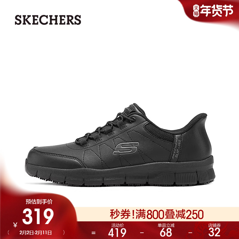 斯凯奇闪穿鞋|春季新款皮鞋商务休闲鞋百搭板鞋黑色上班通勤男鞋