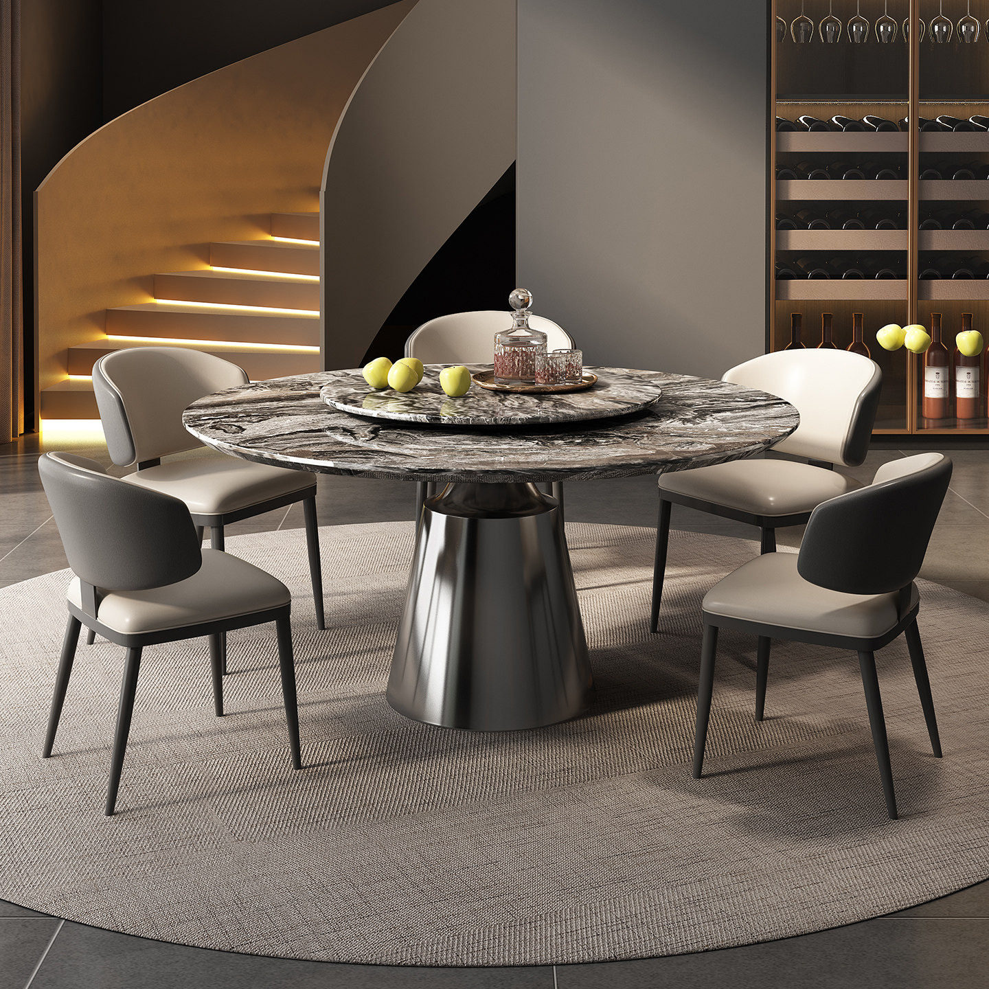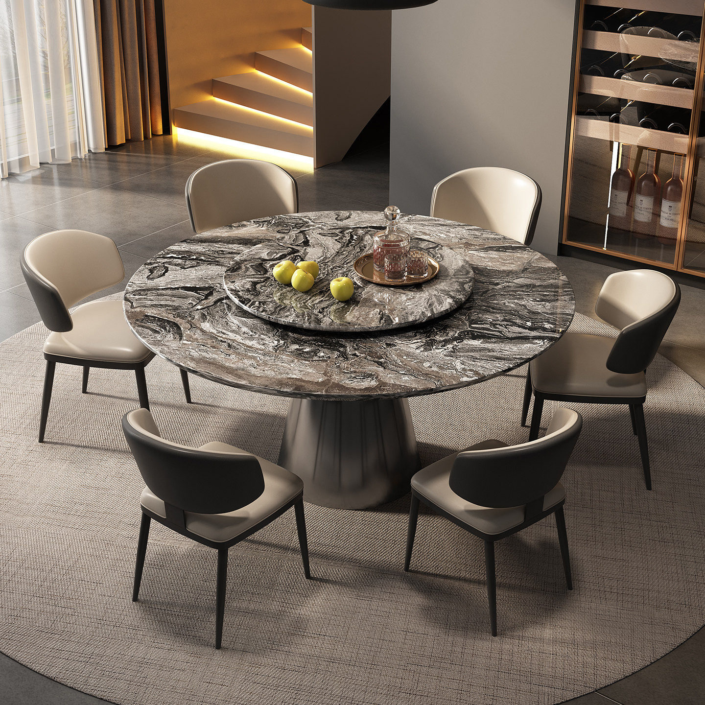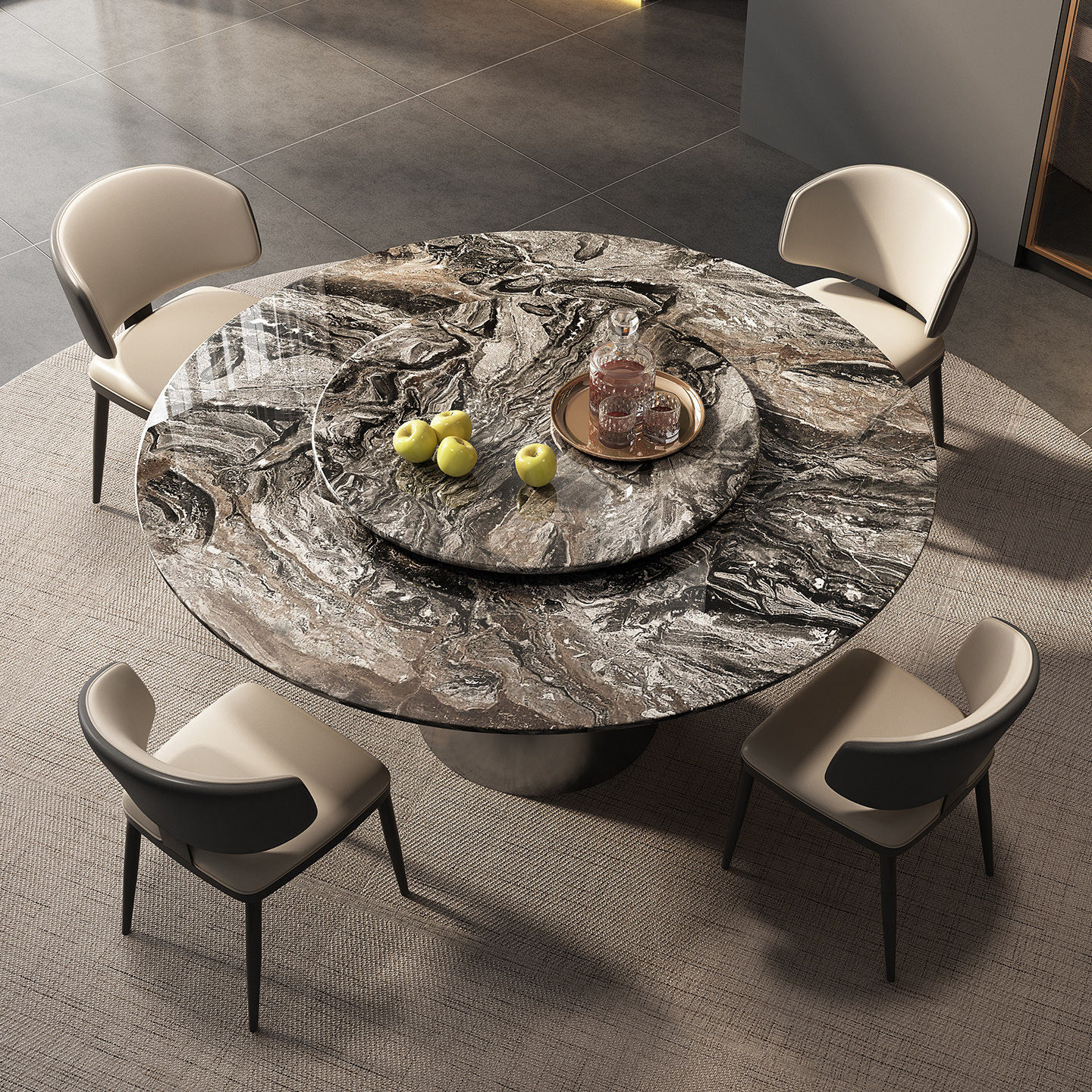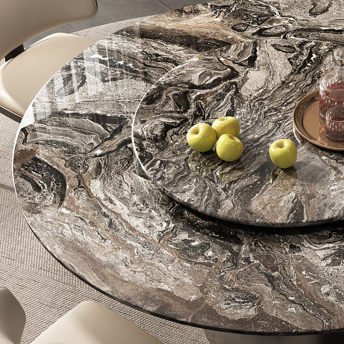 进口威尼斯棕奢石餐桌天然大理石圆餐桌意式轻奢高级感圆形饭桌