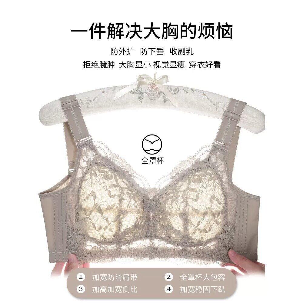 罗丽丝品牌文胸超薄款全罩杯收副乳防下垂大胸显小内衣女大码蕾丝