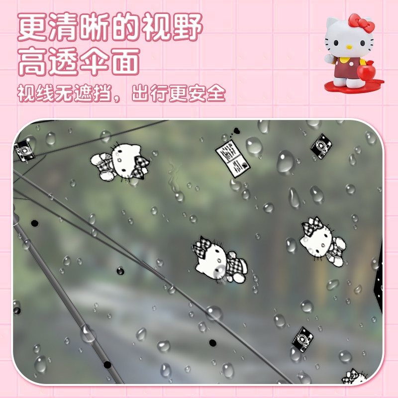三丽鸥凯蒂猫正版儿童雨伞透明女生高颜值自动长柄伞学生上学专用