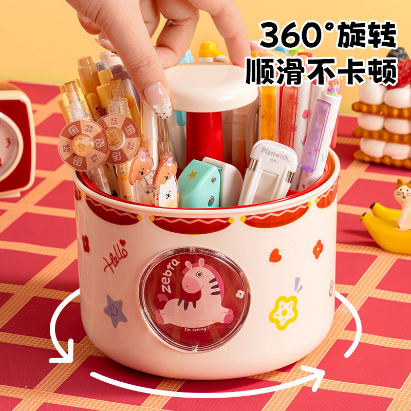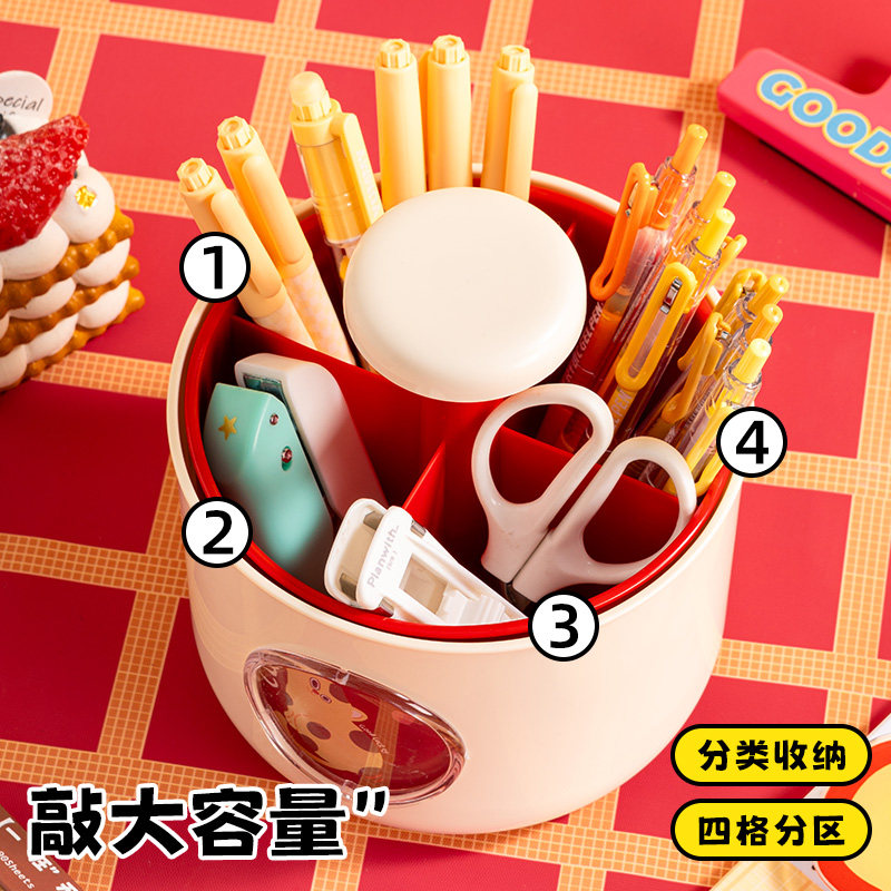 三年二班 旋转笔筒大容量收纳盒多格分区学生书桌笔桶办公室桌面多功能收纳笔架儿童男孩女孩可爱创意笔盒