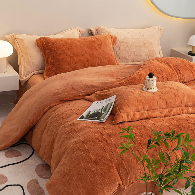 无印良品纯色秋冬牛奶绒四件套珊瑚绒床上绒三件套冬季加绒法兰绒