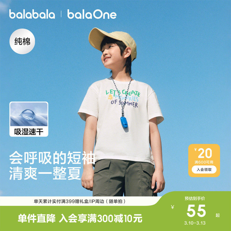 巴拉巴拉童装儿童短袖t恤男童女童上衣2026新款衣服夏装速干潮酷