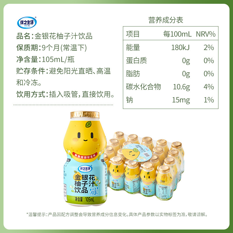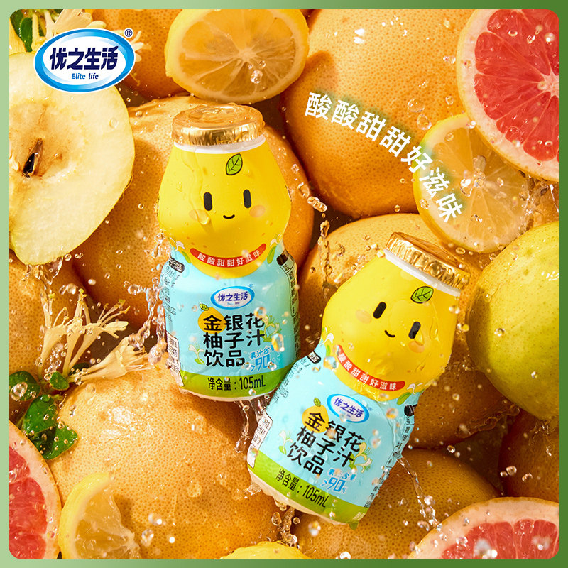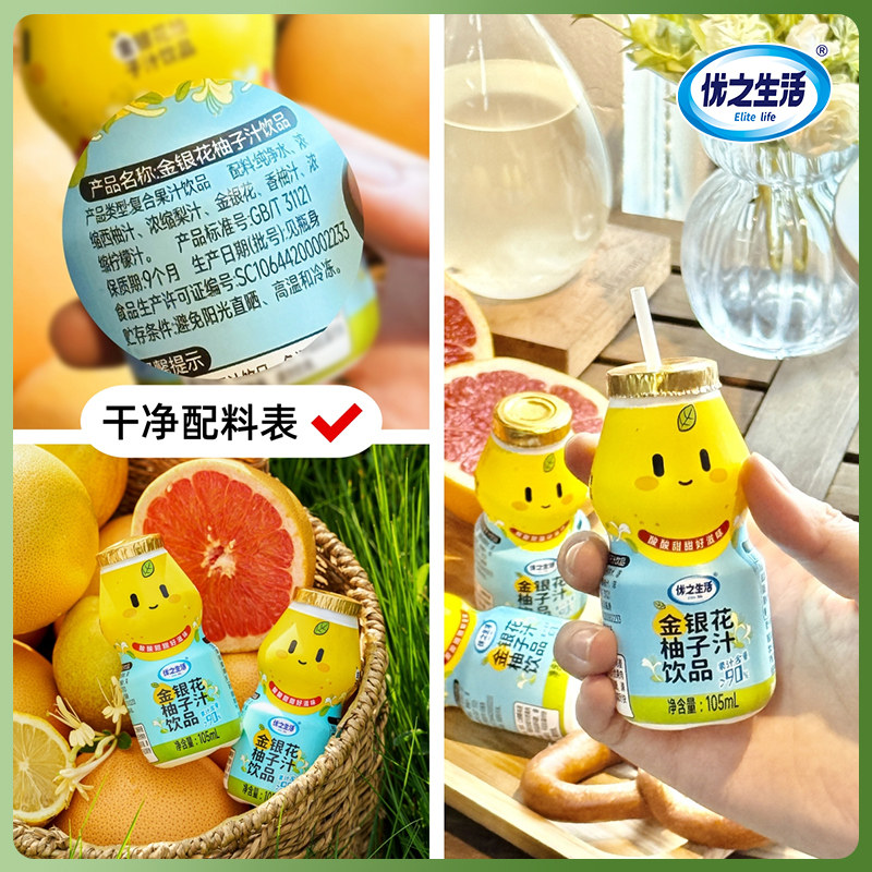 优之生活金银花柚子汁饮品105ml*20瓶儿童酸甜果汁饮料清润下火