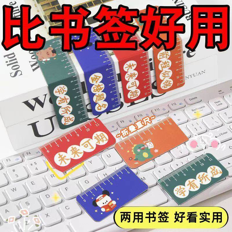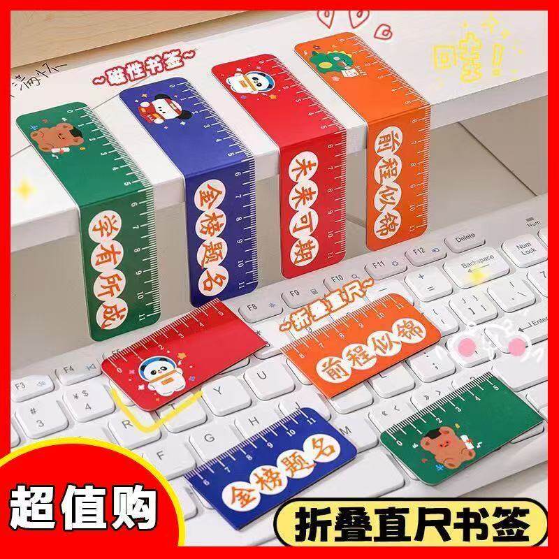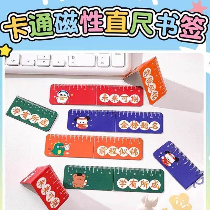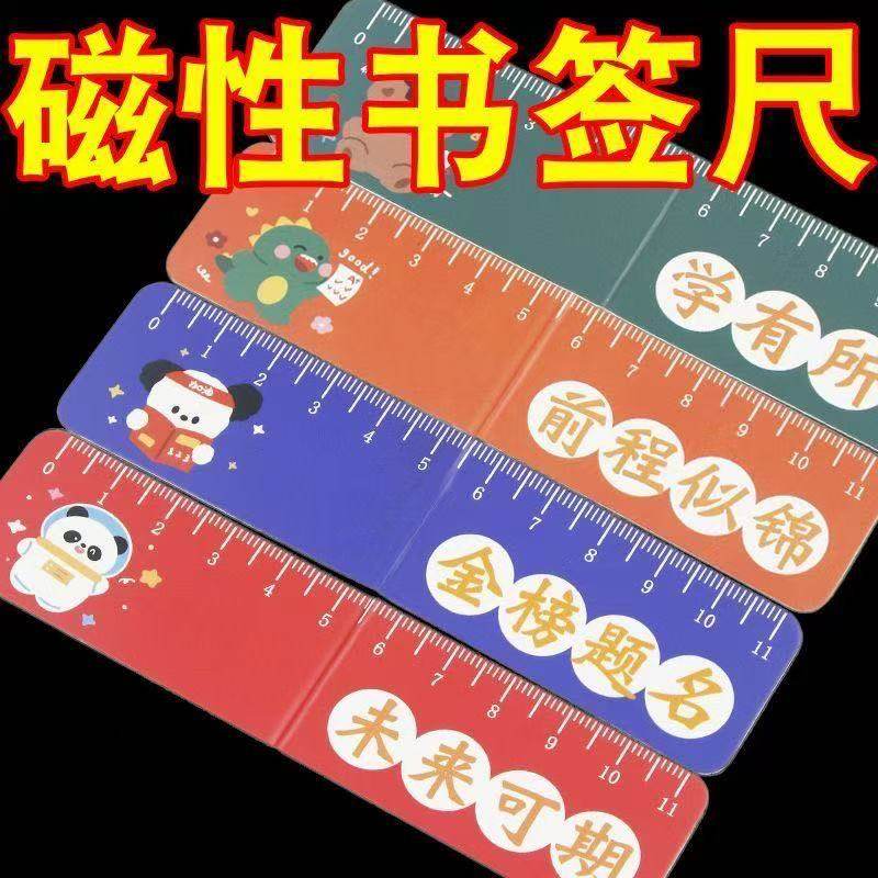 创意卡通磁性书签尺学生可爱折叠书页夹多功能励志文字磁吸直尺