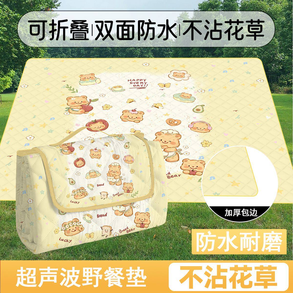 加厚超声波野餐垫户外春游地垫野垫便携防水可折叠帐篷地垫防潮垫