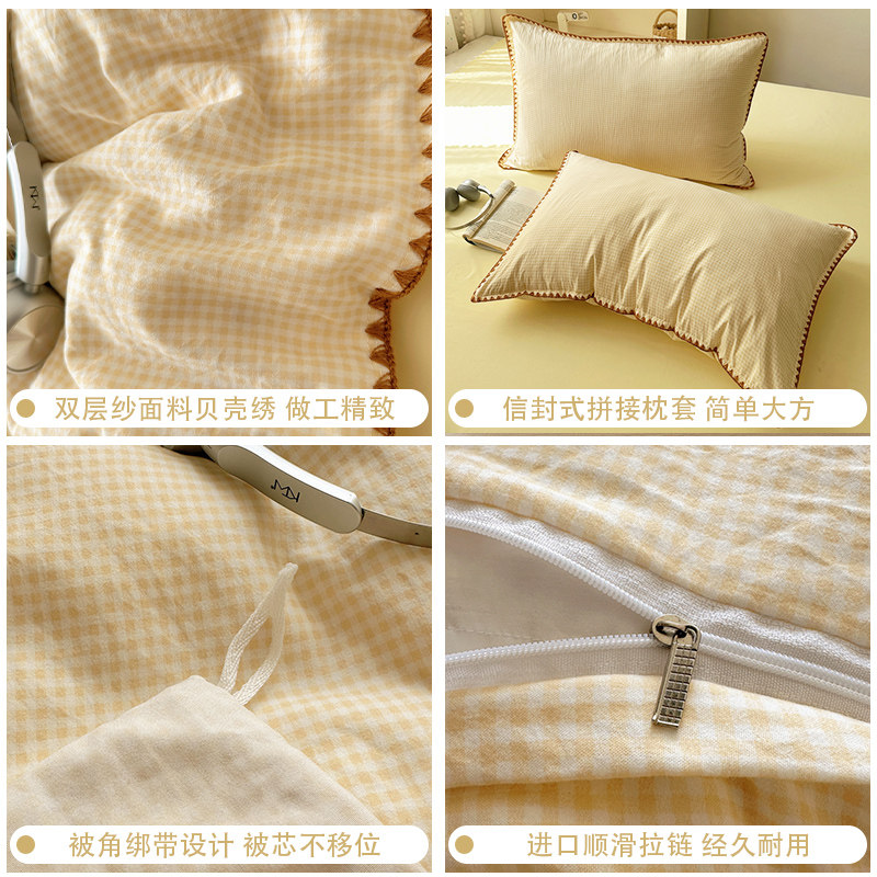 A类水洗棉双层纱四件套被罩非全棉纯棉床单人学生宿舍被套三件套