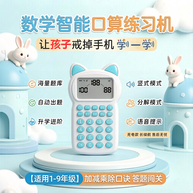 推荐 卡通猫耳口算练习机儿童数学启蒙智能计算器1-9年级自动出题