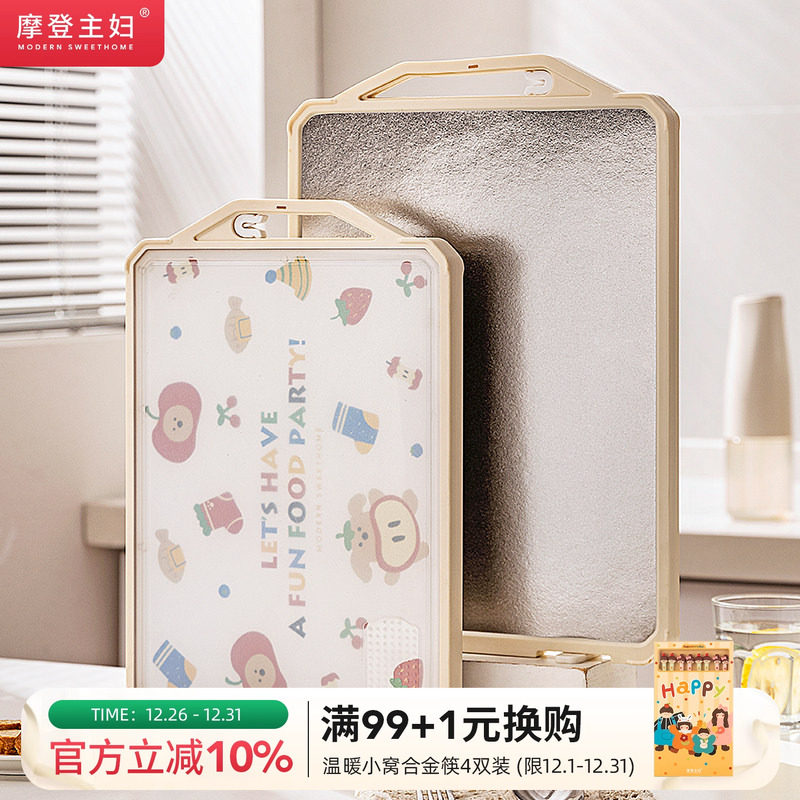 摩登主妇纯钛菜板抗菌防霉家用案板粘板厨房专用双面切菜水果砧板