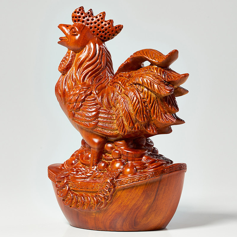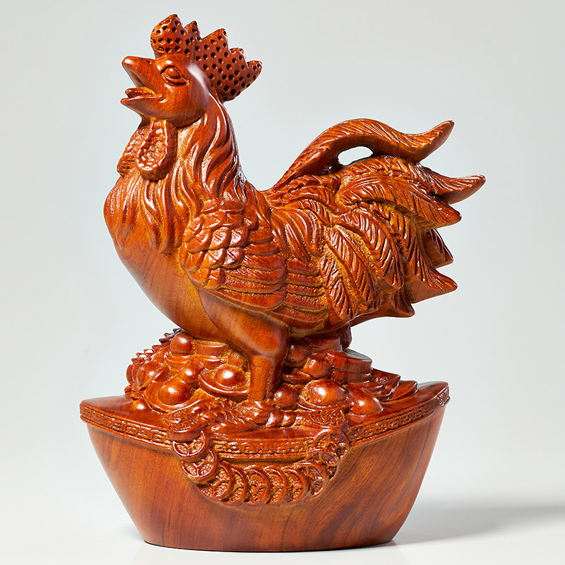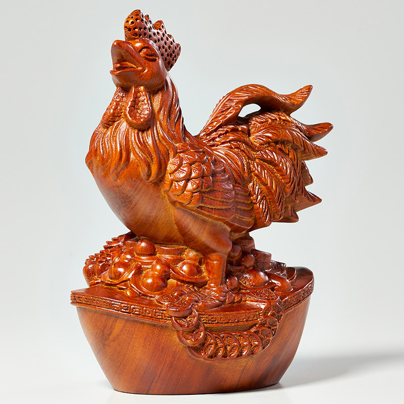 花梨木雕金鸡摆件十二生肖公鸡现代家居装饰客厅办公室工艺品摆设