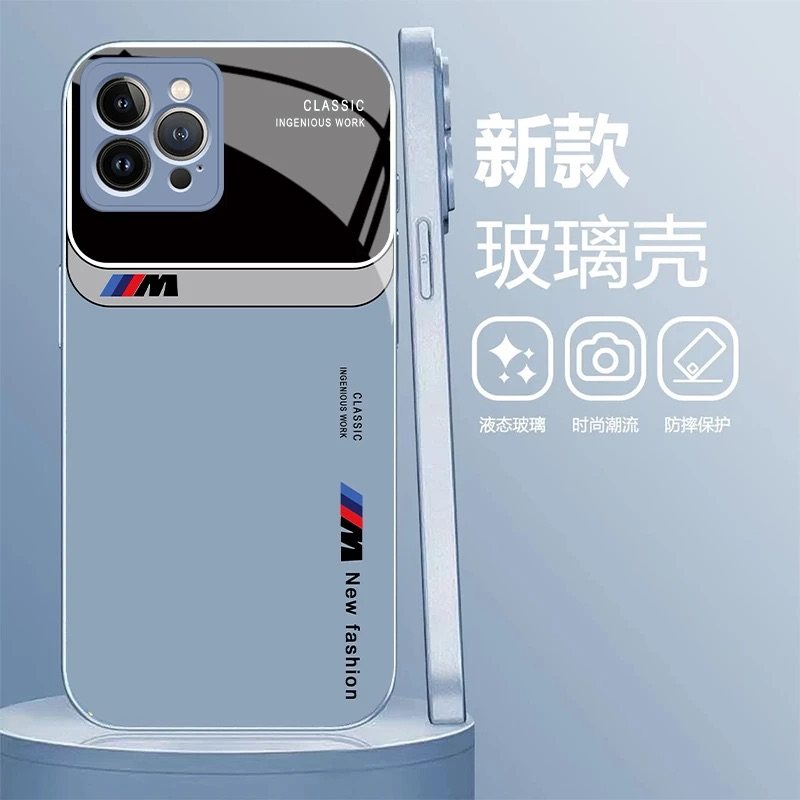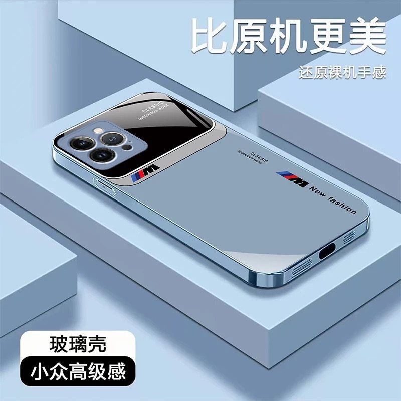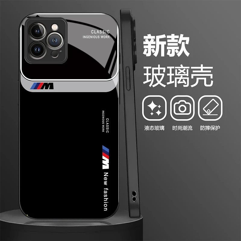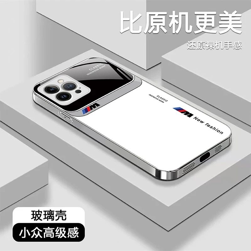 简约宝马玻璃壳适用苹果13PROMAX手机壳新款简约高级感iPhone16/15/14外壳时尚商务全包防摔苹果17手机套男款