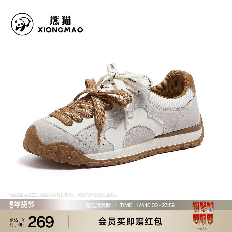 熊猫户外春季新年时尚百搭拼色双鞋带德训阿甘鞋休闲潮流运动鞋女