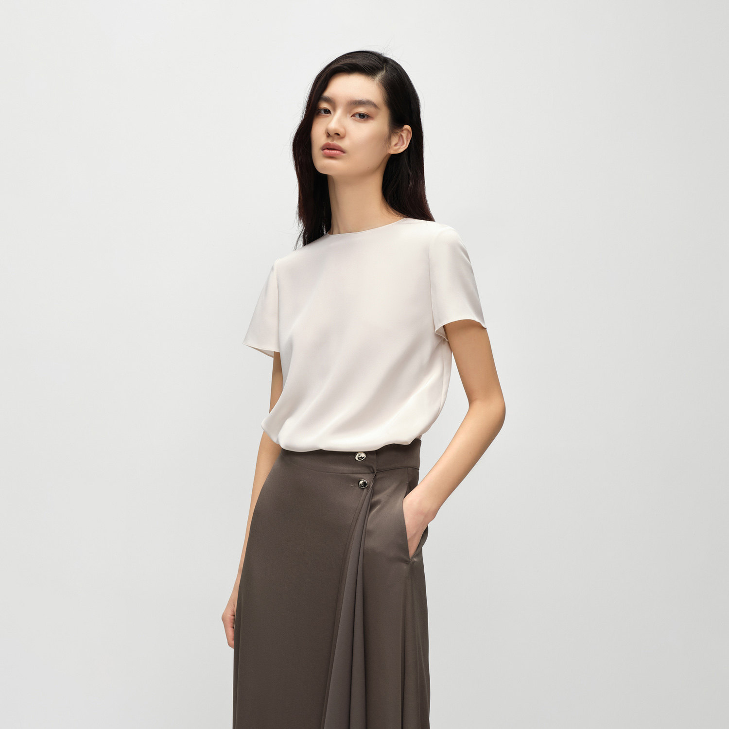【重磅真丝】OVV2025春夏新款女装22MM弹力重绉短袖T恤上衣