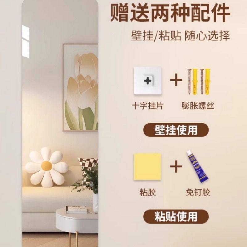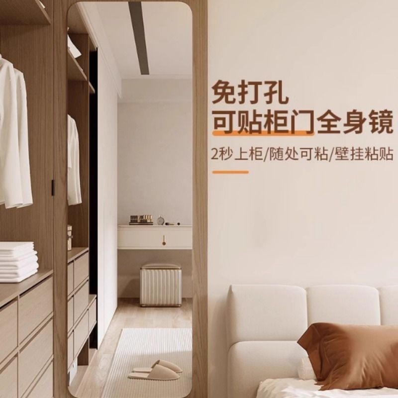 德国全身镜家用卧室玻璃穿衣镜粘贴柜门镜子贴墙自粘衣柜隐形镜子