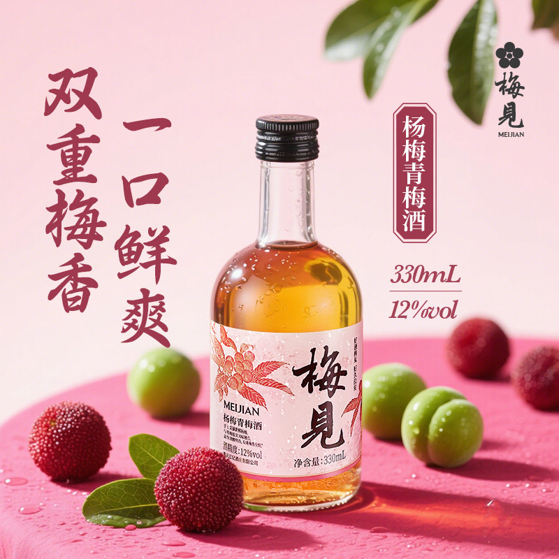 梅见青梅酒330ml金桂原味乌梅茉莉杨梅青柑超酸梅酒女士甜酒果酒