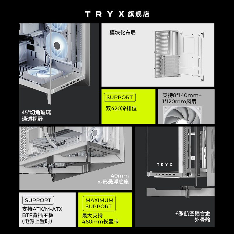 TRYX创氪星系LUCA路氪L70机箱EATX双420水冷排悬浮底座模块化设计