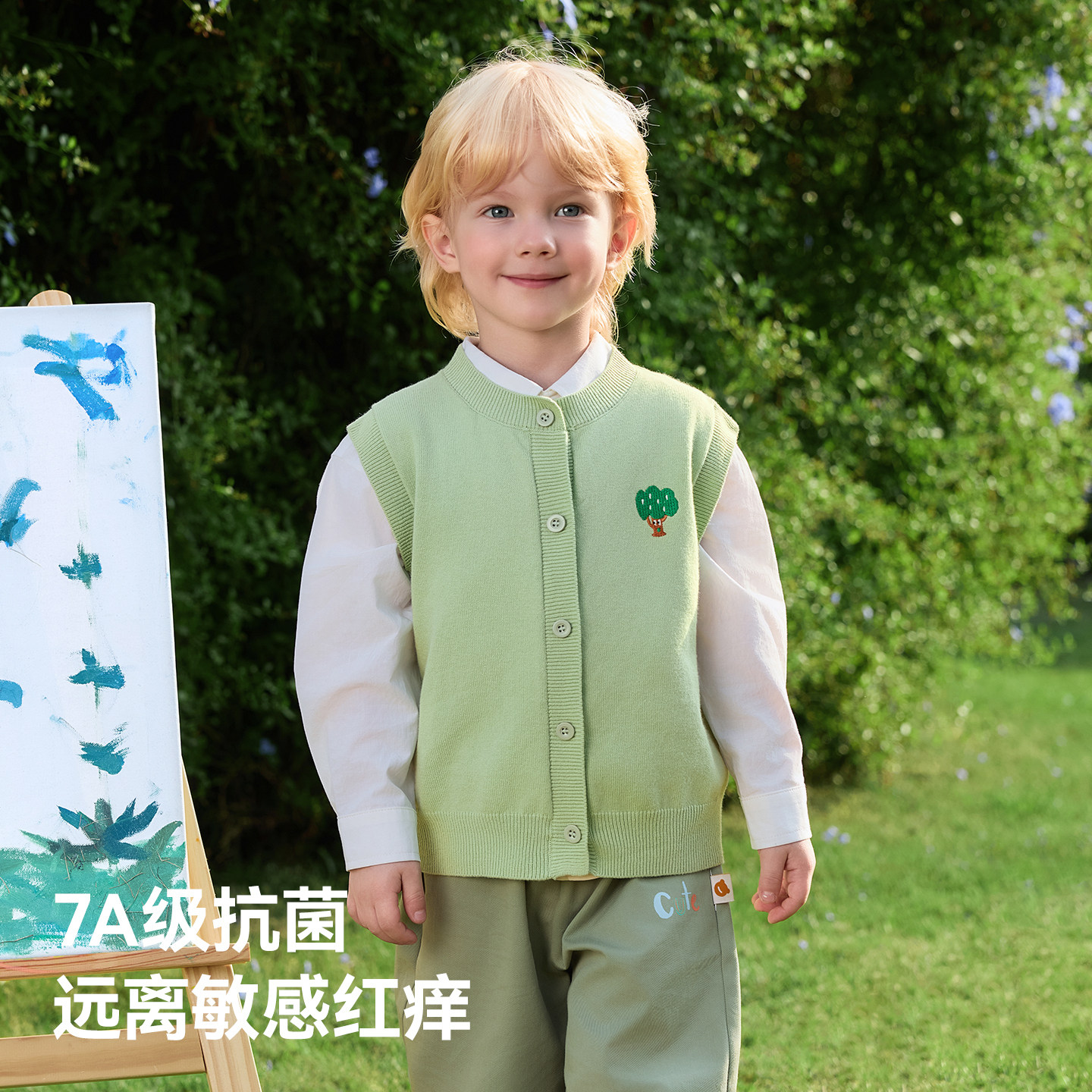 贝肽斯儿童针织马甲2026春秋新款婴儿保暖背心男女宝宝针织毛线衣