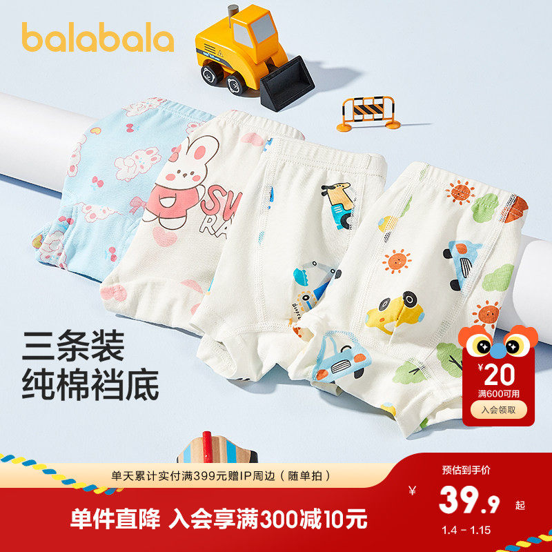 【balaOne】巴拉巴拉儿童内裤棉男童不夹pp抗菌裆四角短裤三条装