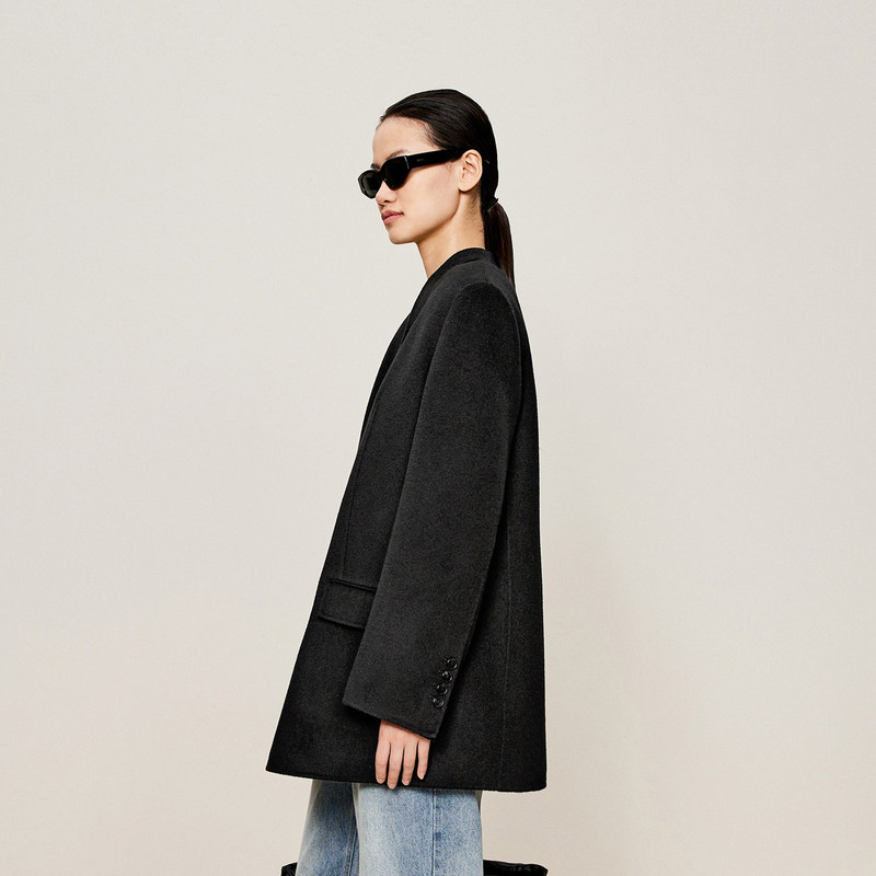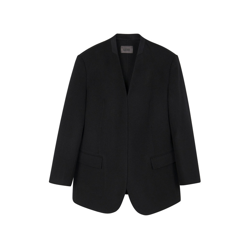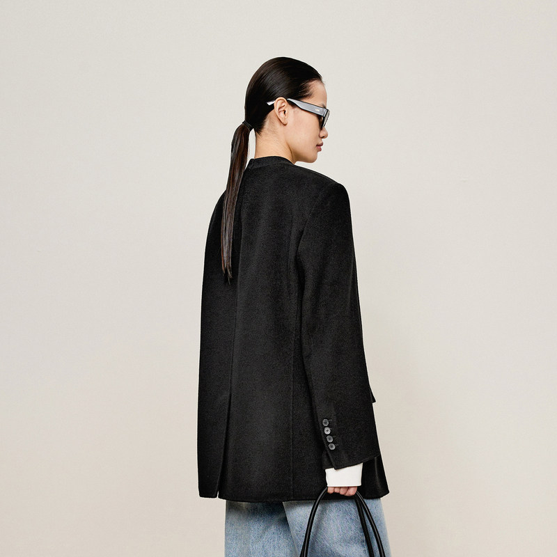 LESS通勤职场西装外套女绵羊毛休闲黑宽松立领毛呢大衣2O0813370