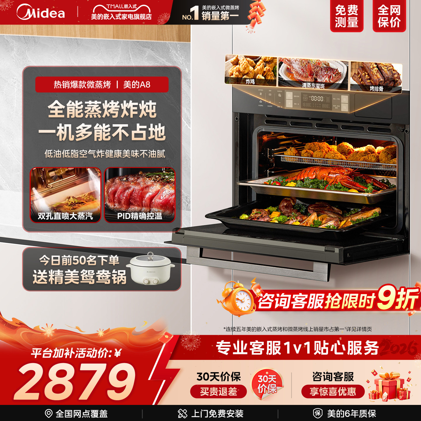 美的A8蒸烤一体机嵌入式蒸烤箱家用厨房电器蒸烤炸炖四合一智能