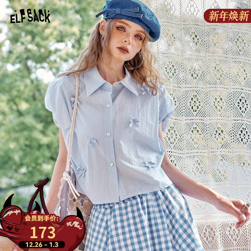 妖精的口袋蝴蝶结小飞袖甜美衬衫女2025年夏季新款设计感通勤上衣