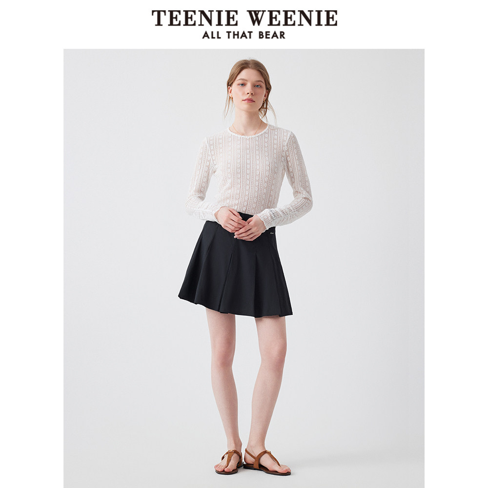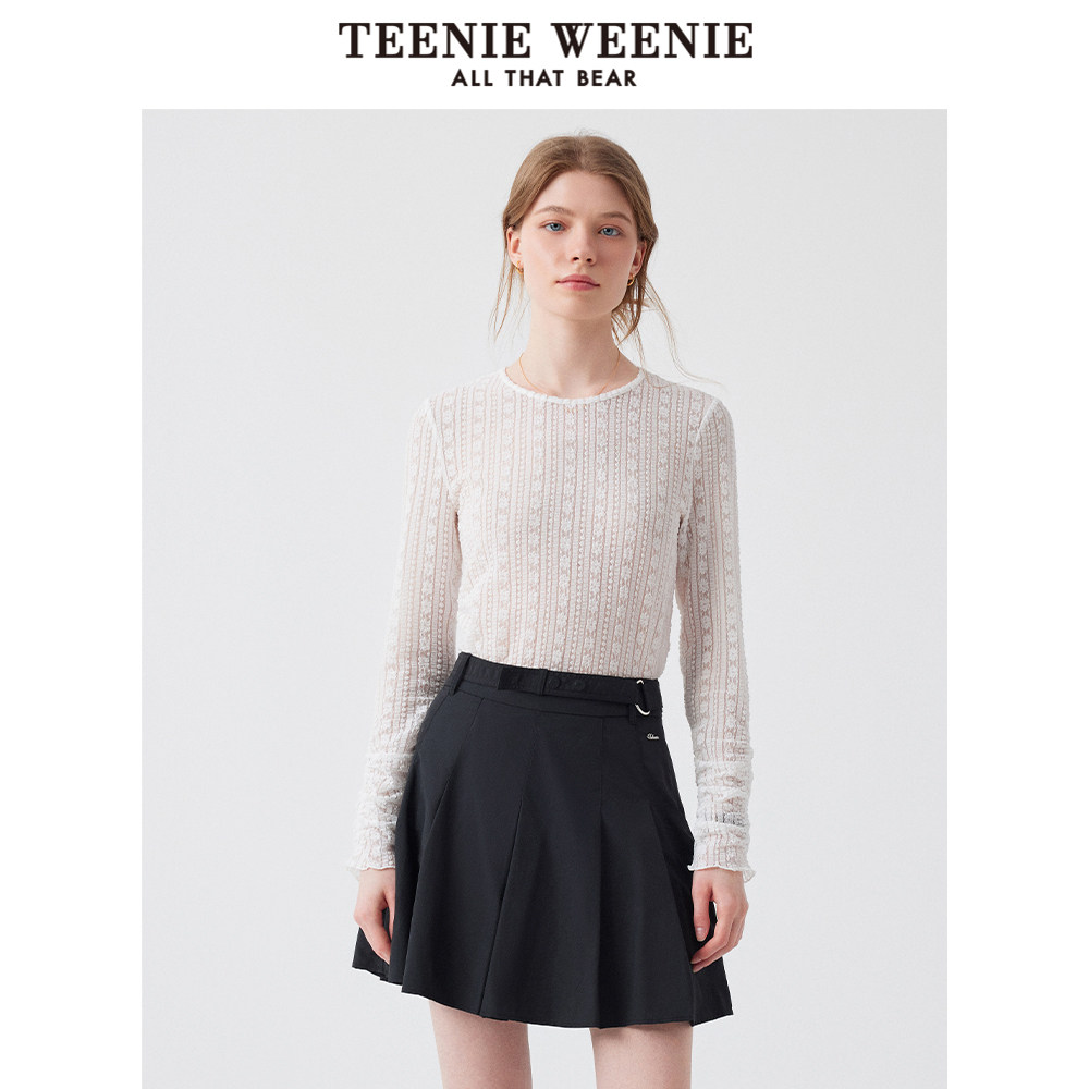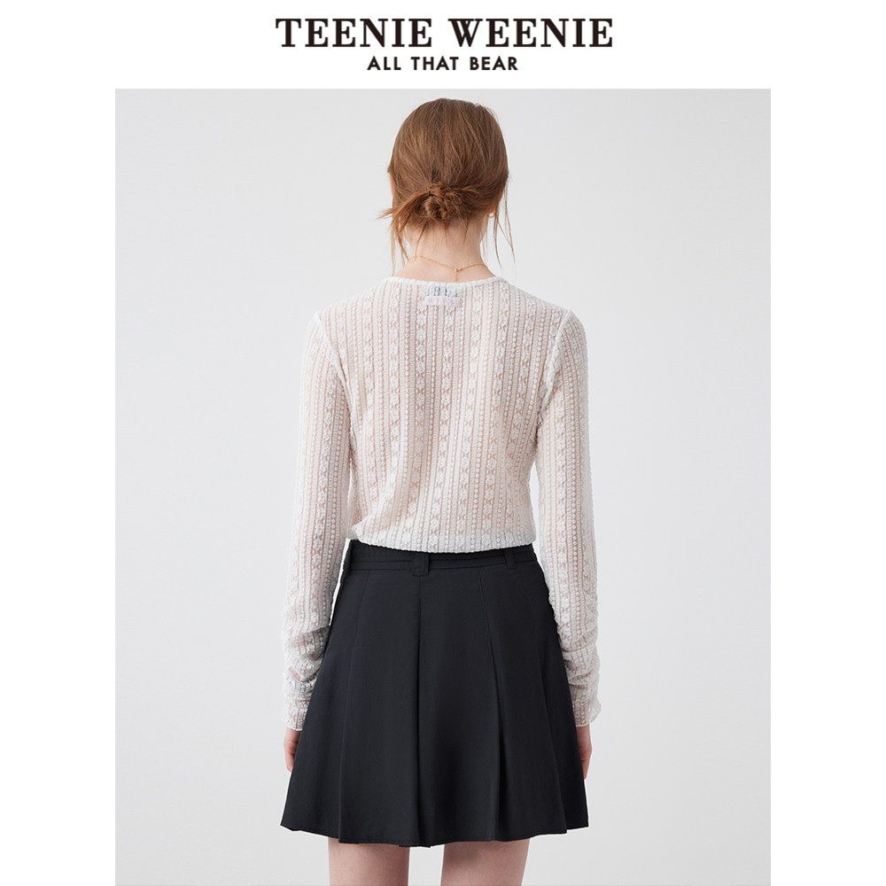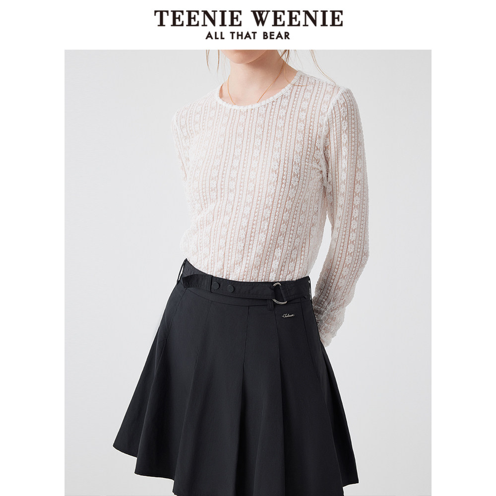 TeenieWeenie小熊奥莱长袖T恤2025夏新款松弛简约甜美蕾丝打底衫