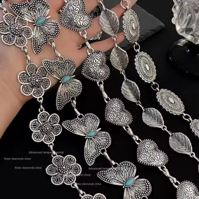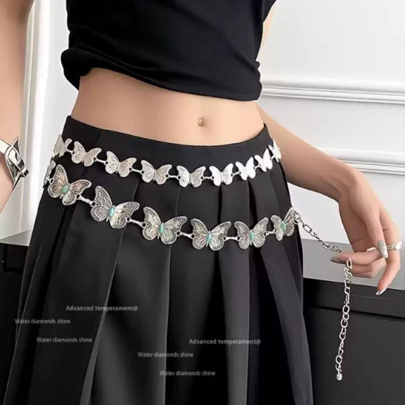 银色金属腰链高级感配裙子复古波西米亚蝴蝶链条y2k腰带女款配饰