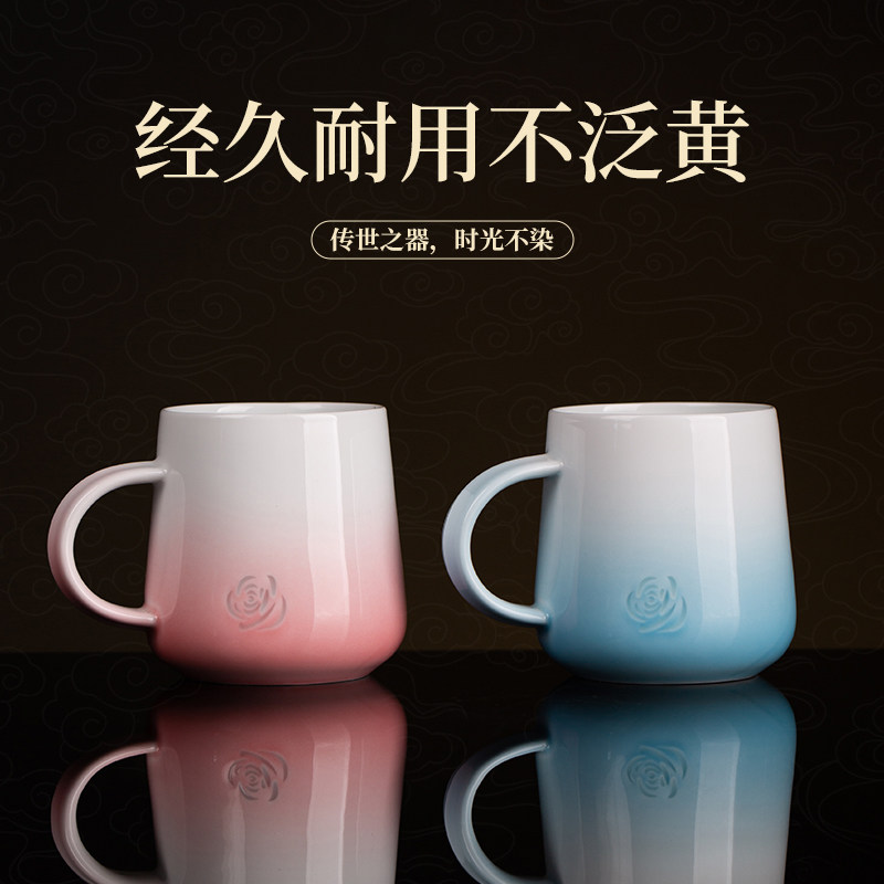 景德镇陶瓷器社蓝玲粉黛玲珑釉马克杯高颜值情侣对杯男女礼品杯子
