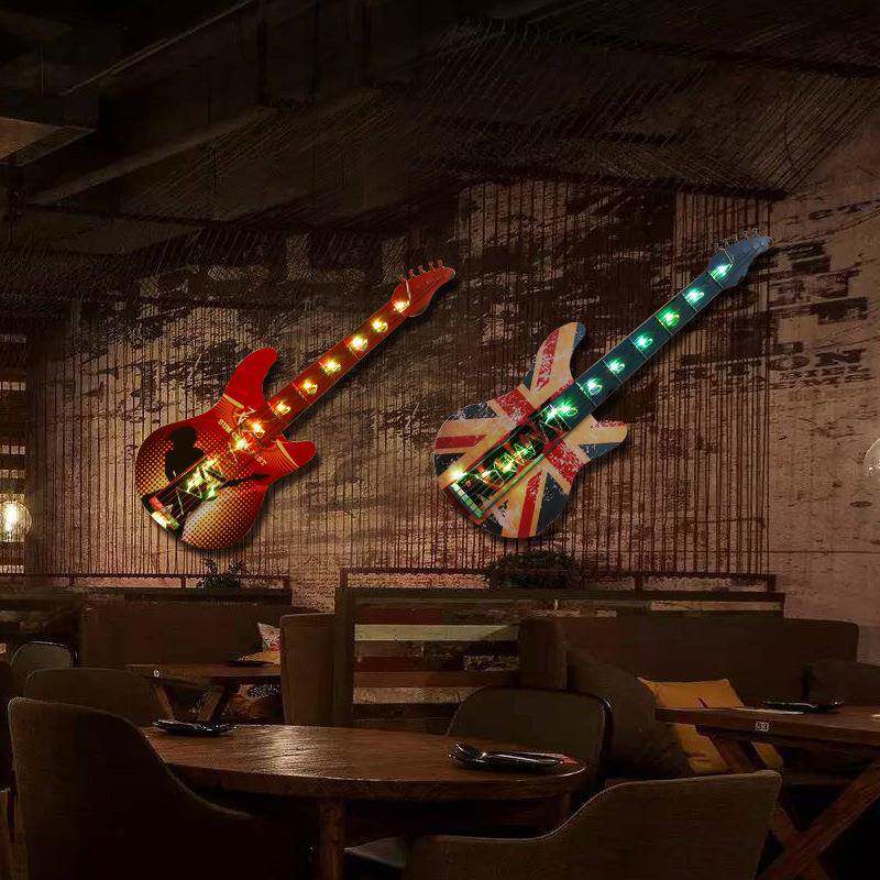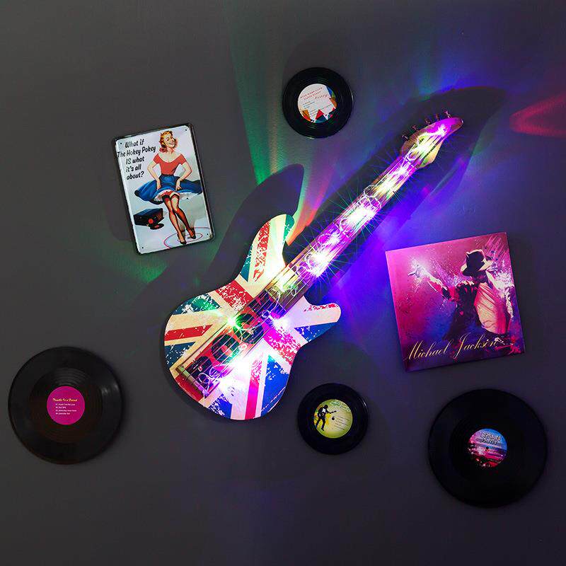 创意 LED灯铁艺吉它装饰复古挂件酒吧壁饰吉他工艺品装饰琴不演凑