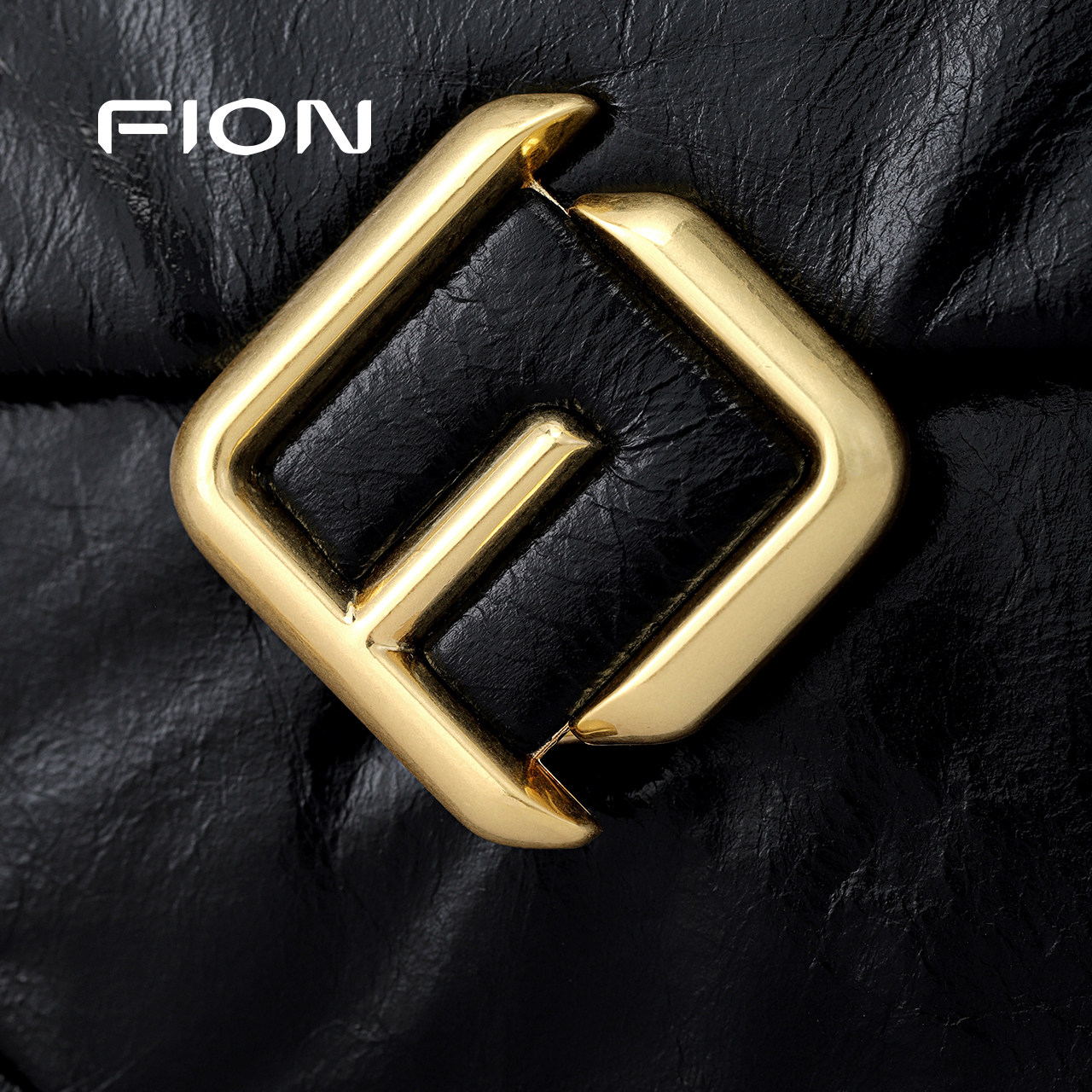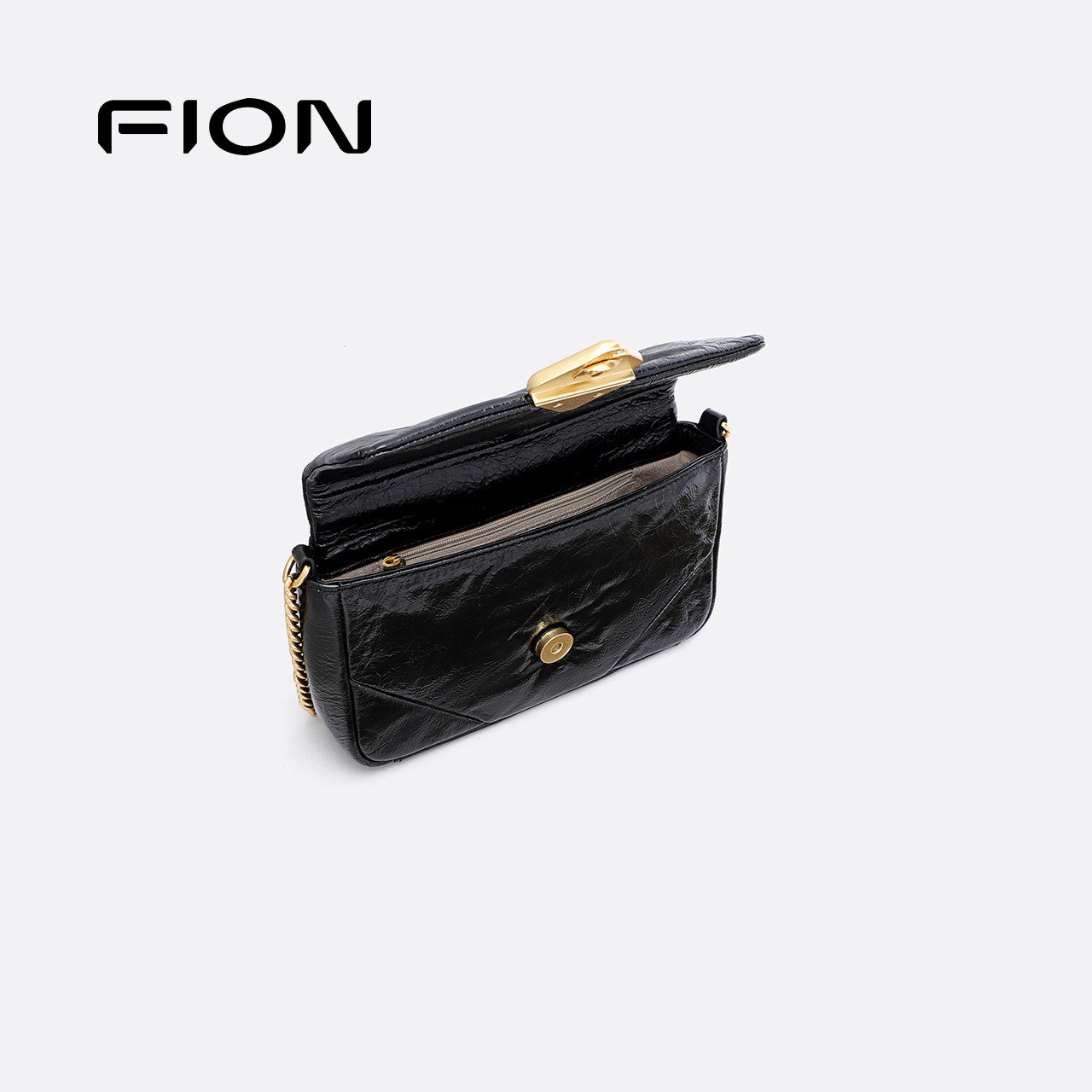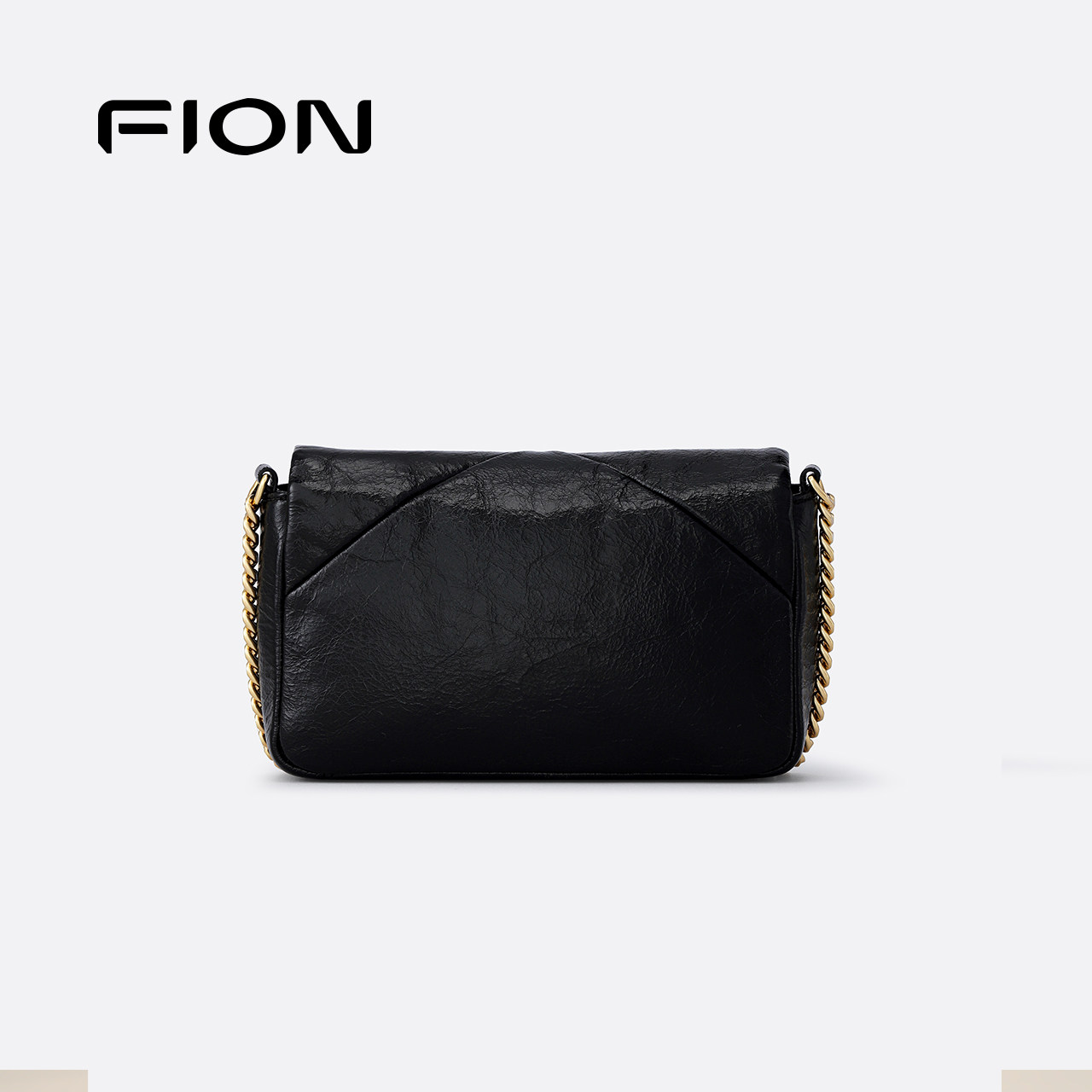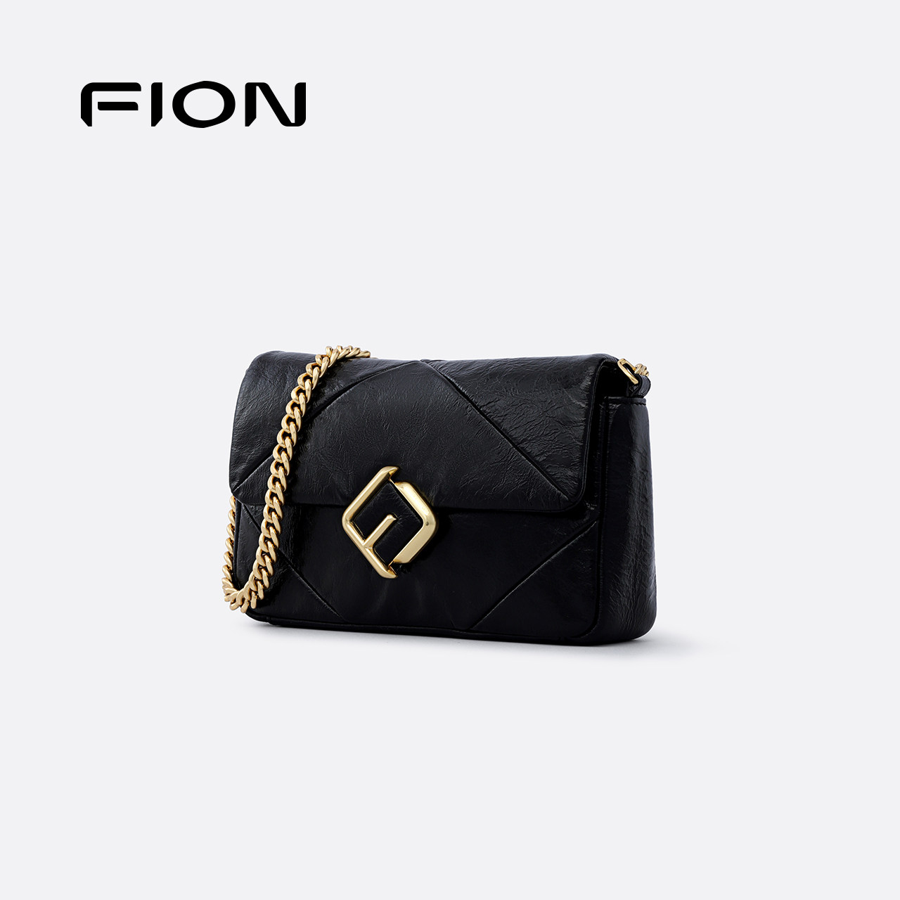 Fion/菲安妮女包真皮小方包新款单肩斜挎包菱格链条包通勤方型包