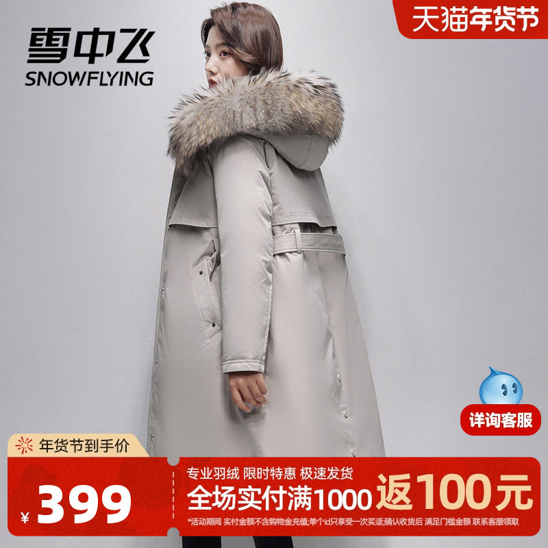 雪中飞秋冬新品气质貉子毛领双面穿女士连帽妈妈中长款羽绒服