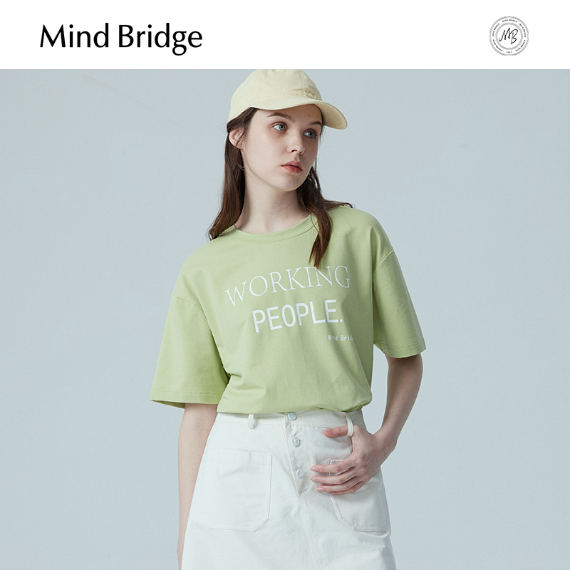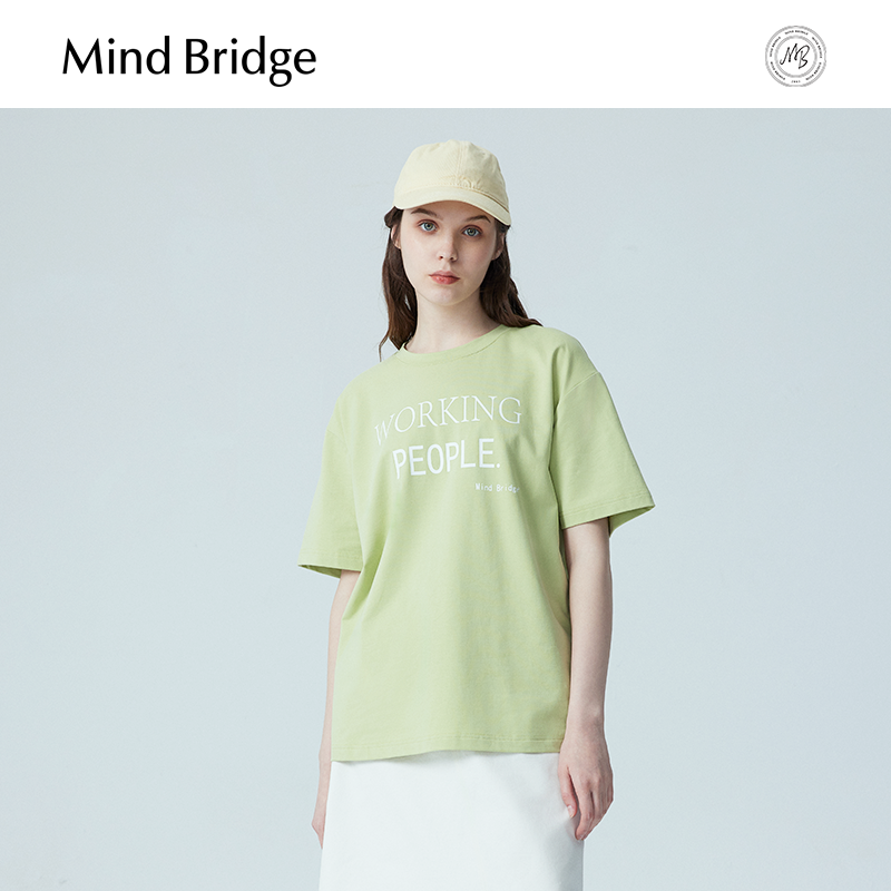 MB MindBridge百家好夏季圆领短袖宽松T恤女士字母印花休闲上衣