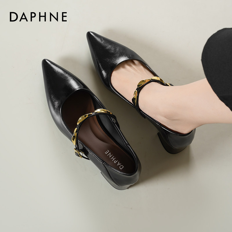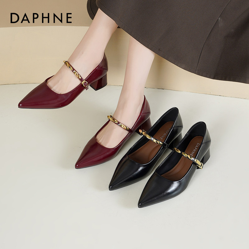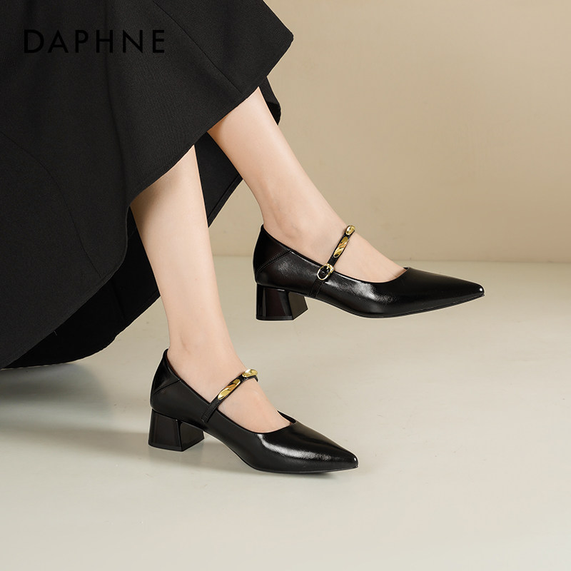 达芙妮单鞋女款2026新款春季女鞋子气质尖头高跟鞋粗跟玛丽珍鞋女