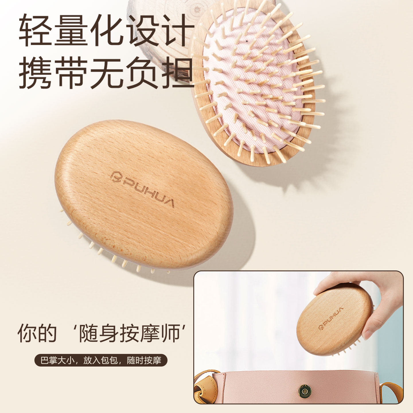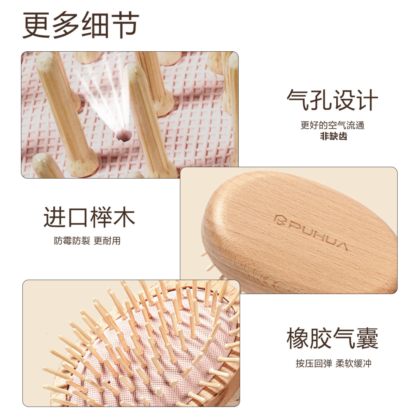 榉木梳舒缓头皮发丝顺滑头皮解痒日常随身养生木齿气垫按摩掌梳子