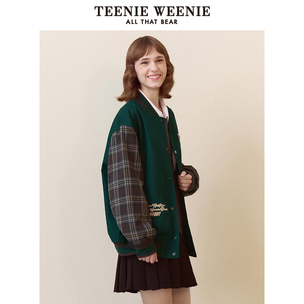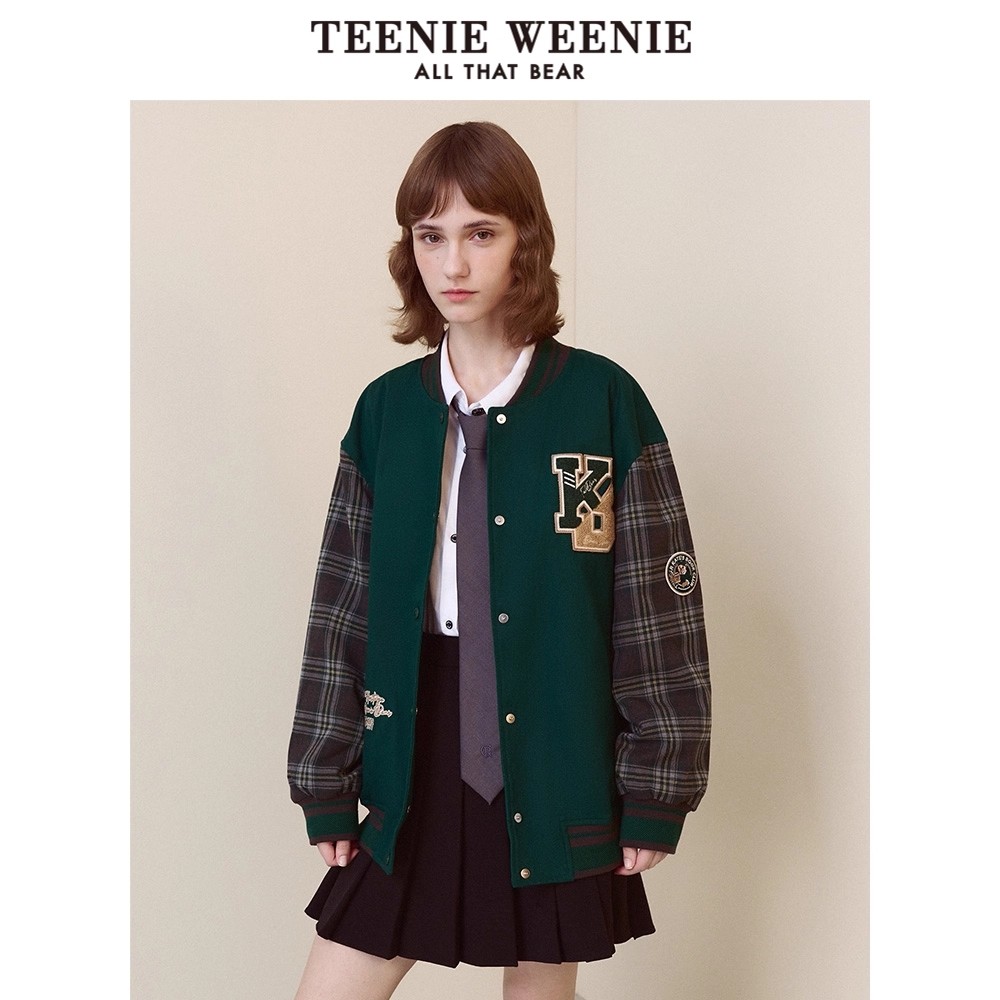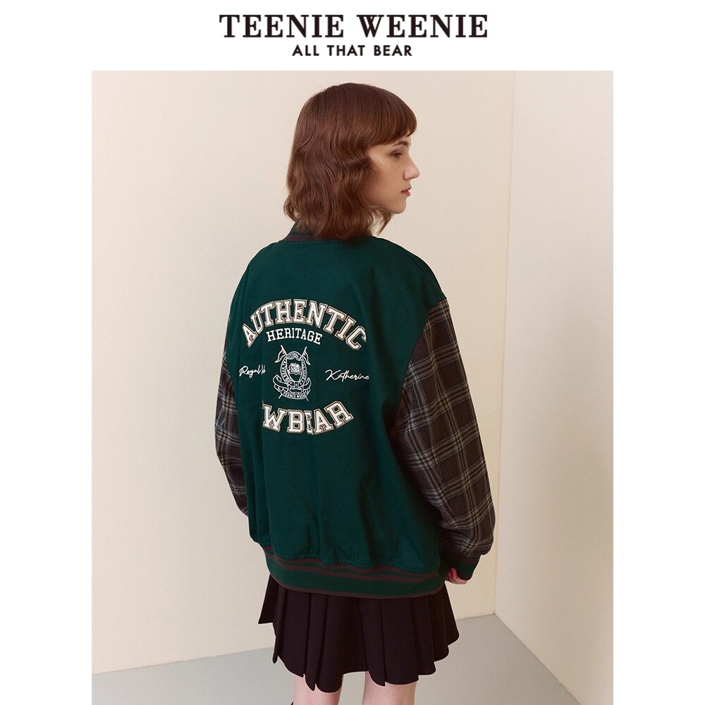 TeenieWeenie小熊奥莱春季学院风时髦撞色休闲外套暗绿色上衣女装