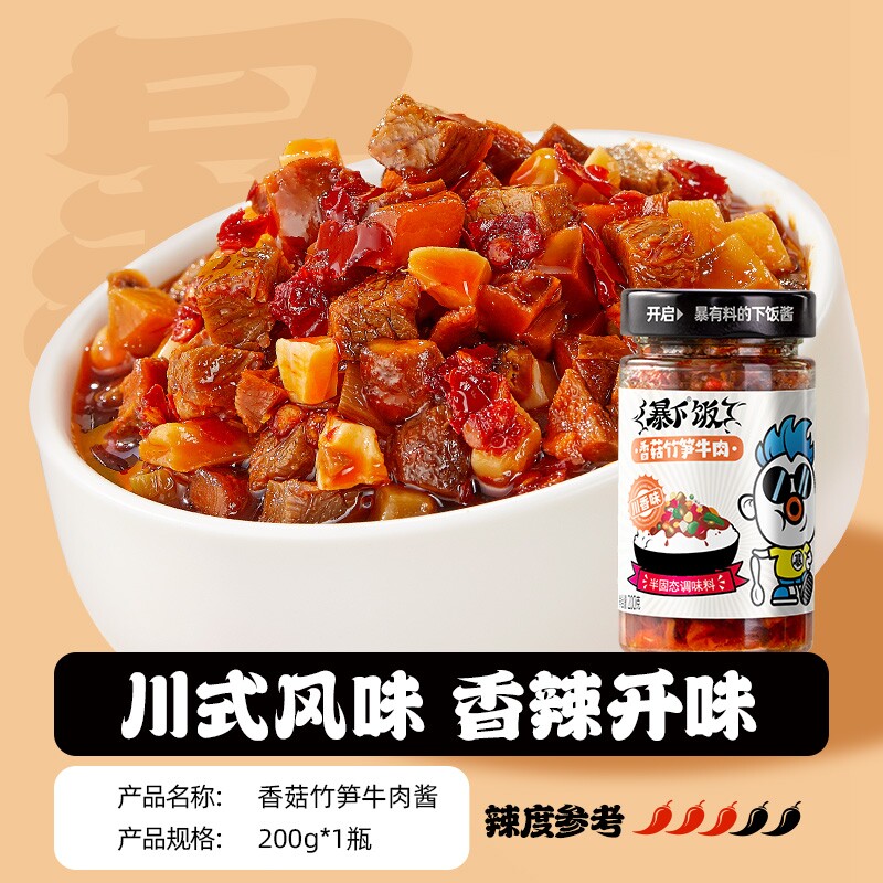 2瓶装吉香居暴下饭香菇竹笋牛肉酱川香烧椒拌饭面辣椒酱辣酱香辣
