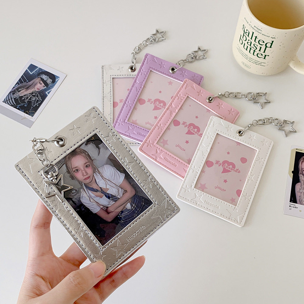 ins星星PU皮质3寸拍立得收纳套简约百搭背包挂饰挂件追星小卡卡套