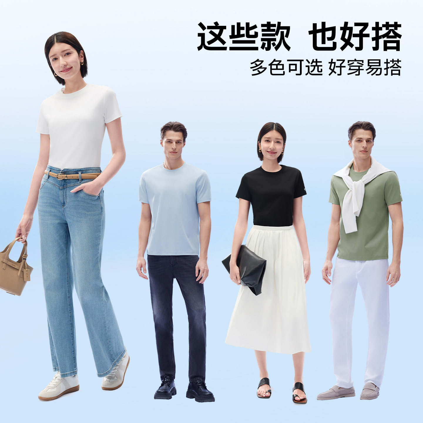 HM男装女装T恤春季透气圆领户外出游运动短袖内搭简约上衣0685816