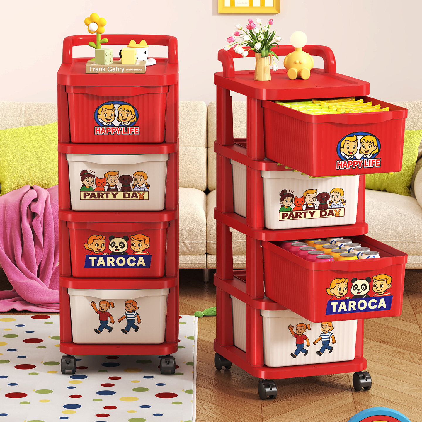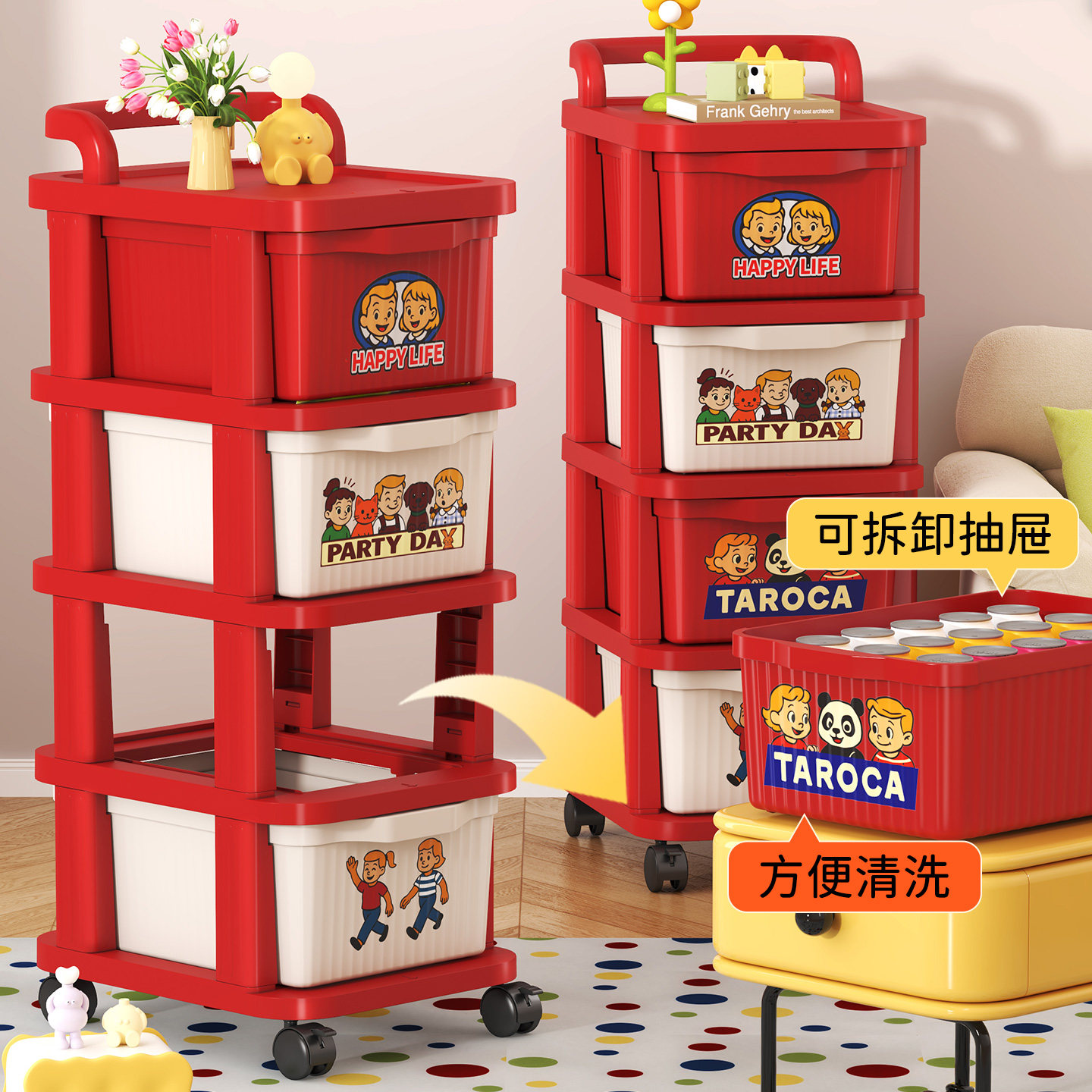 多巴胺小推车置物架抽屉式客厅移动多层零食收纳柜家用卧室床头柜