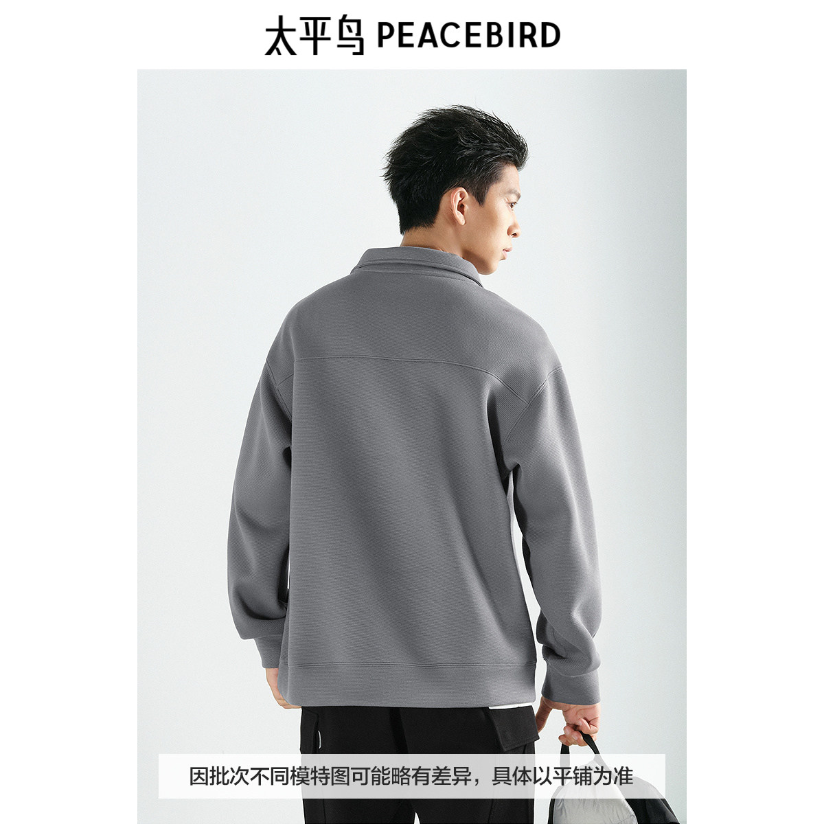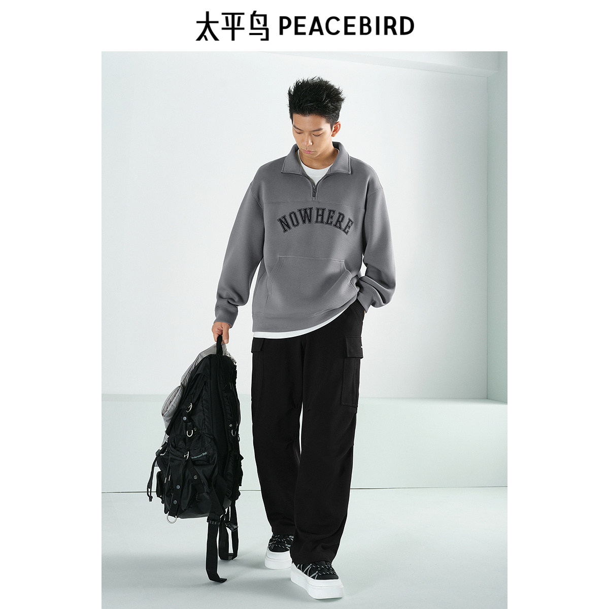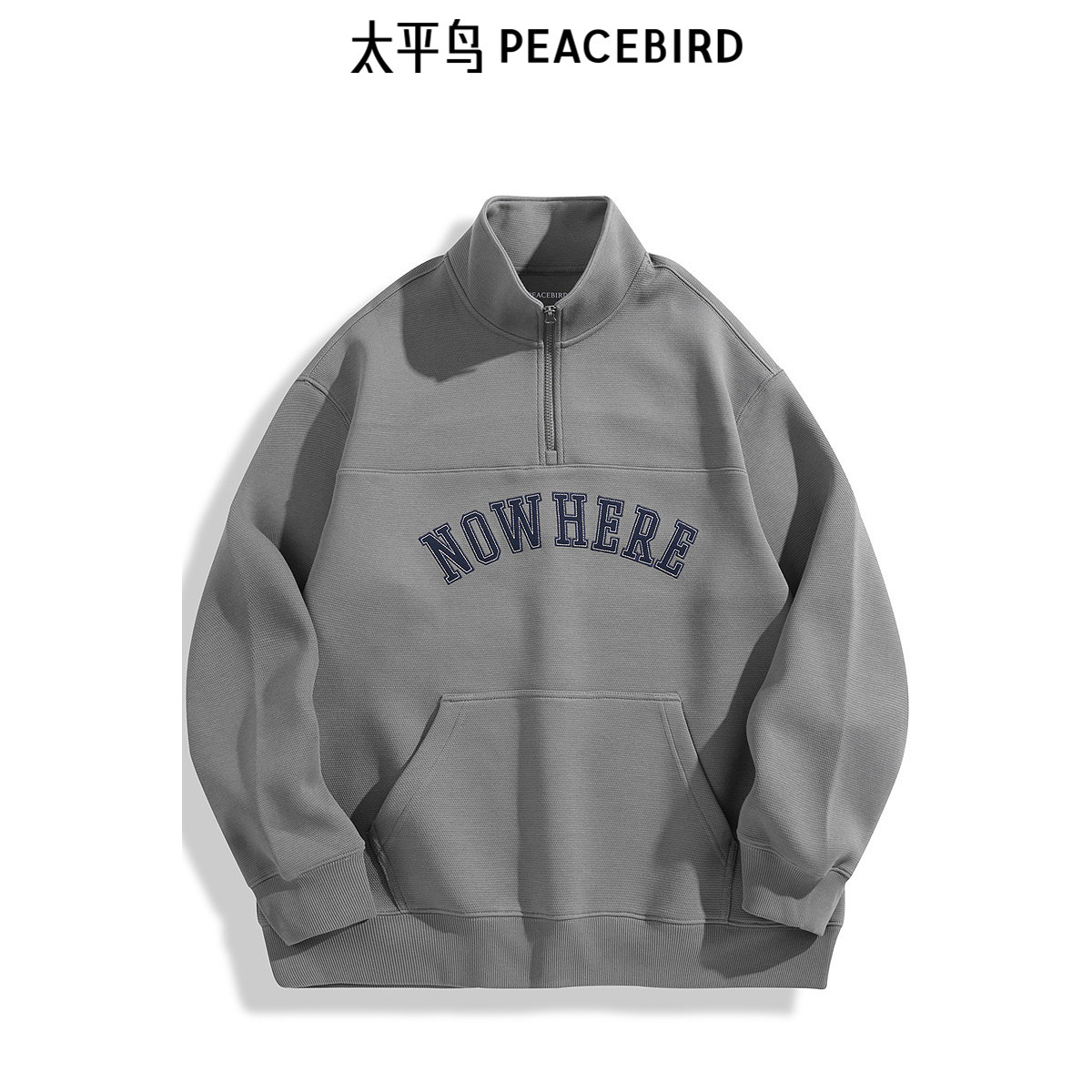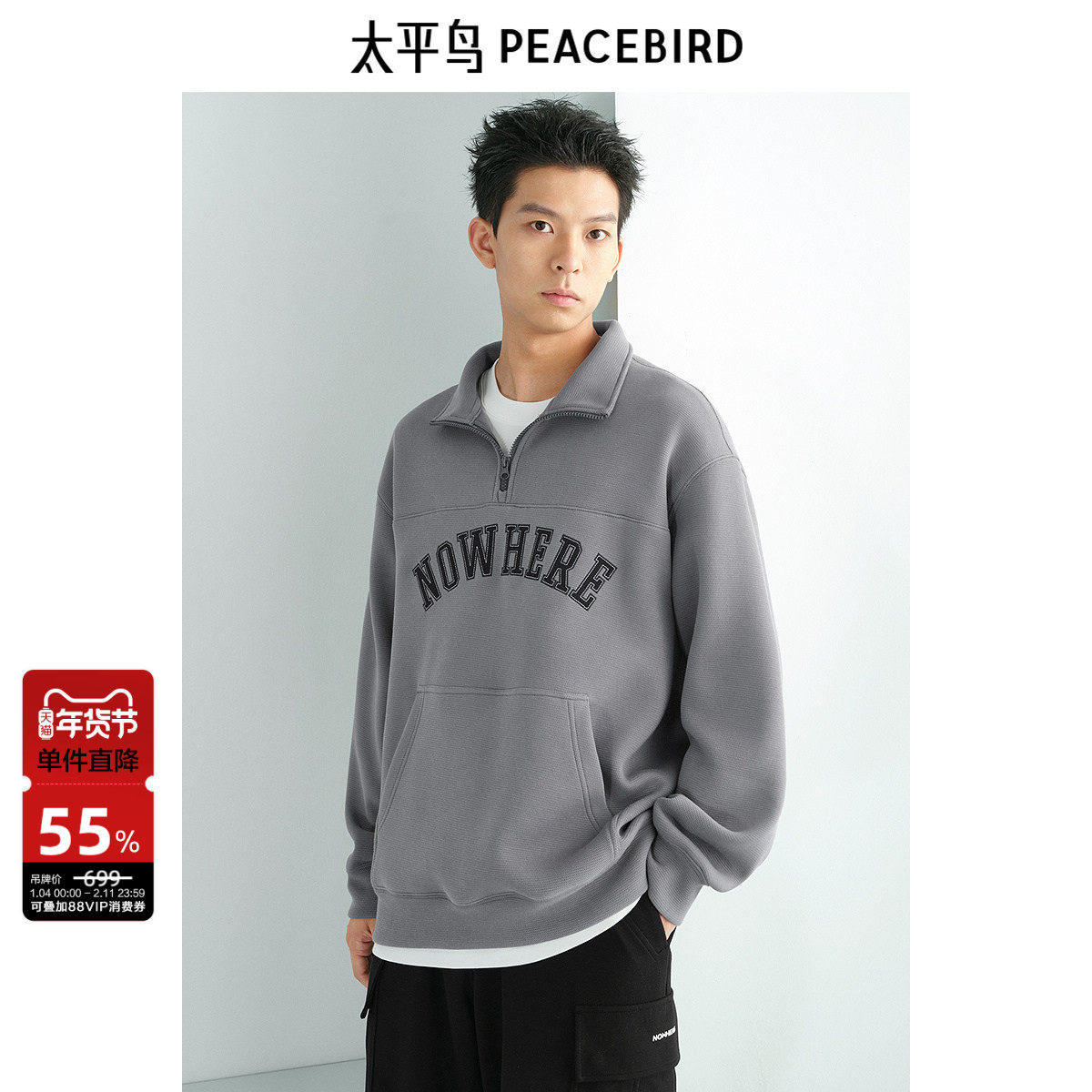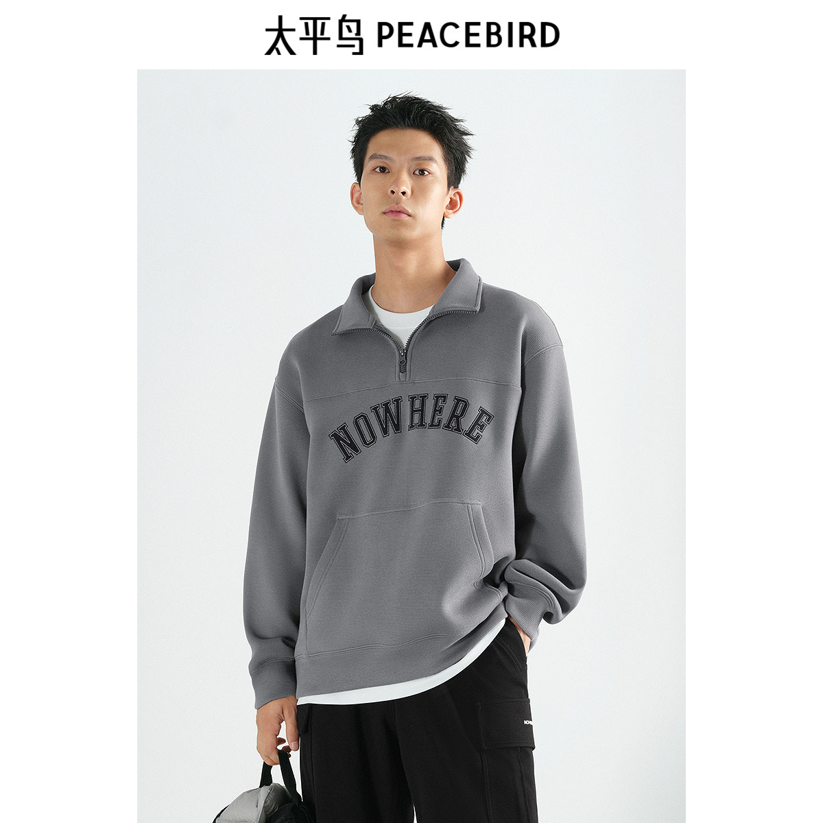 太平鸟男装 半高领休闲卫衣冬季潮流美式立领刺绣拉链卫衣