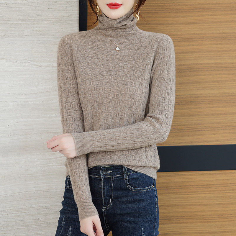 一线成衣100%羊毛纯色半高领针织保暖气质百搭长袖