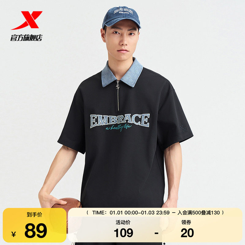 特步短袖2025夏季官方正品运动透气休闲翻领半袖校园风男子POLO衫