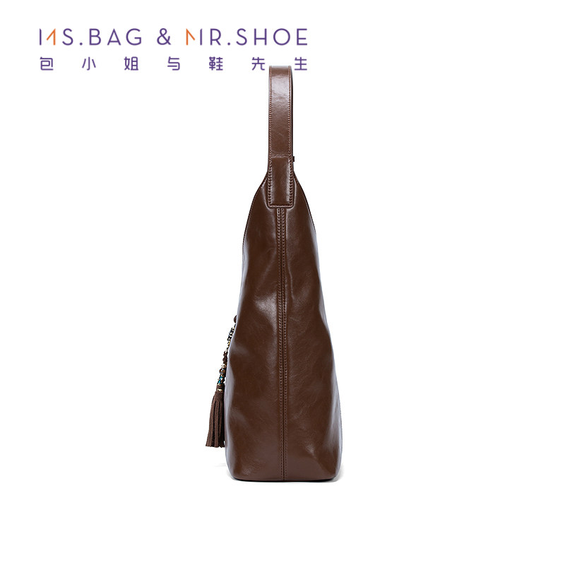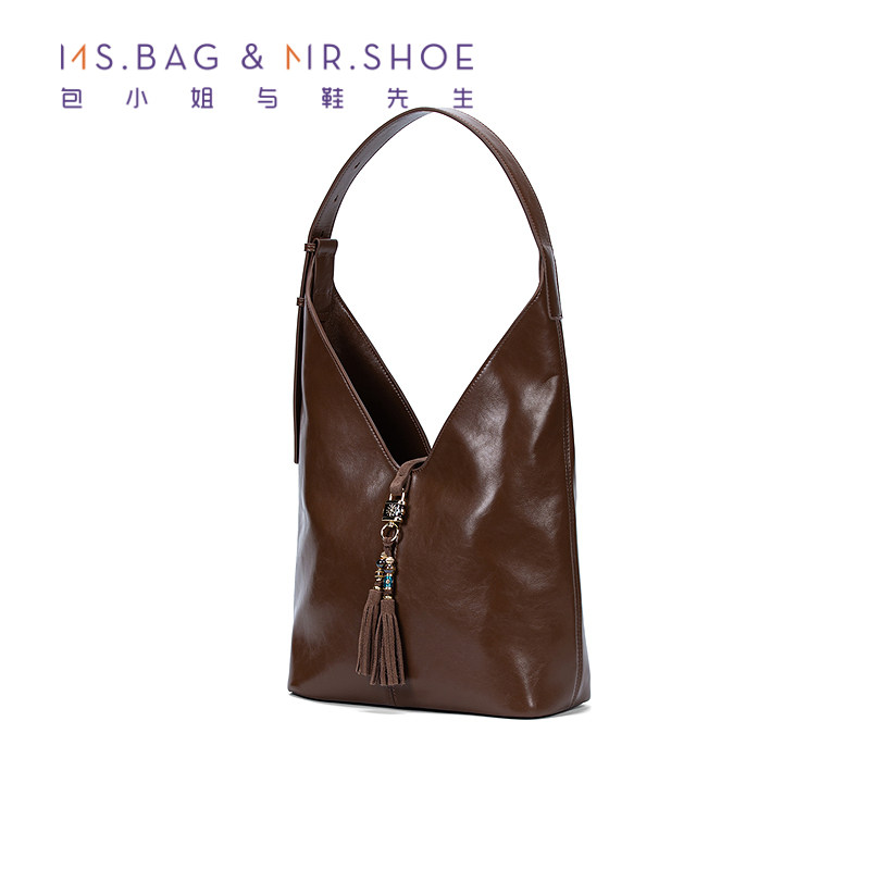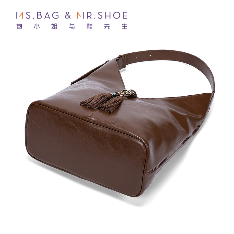 包小姐与鞋先生2026年春季新款棕褐色串珠流苏单肩包女261043