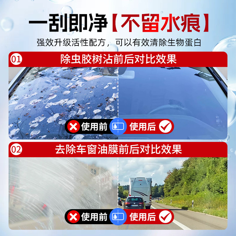 去油膜虫胶玻璃水汽车夏季防雨强力去污清洁养护冬季防冻四季通用